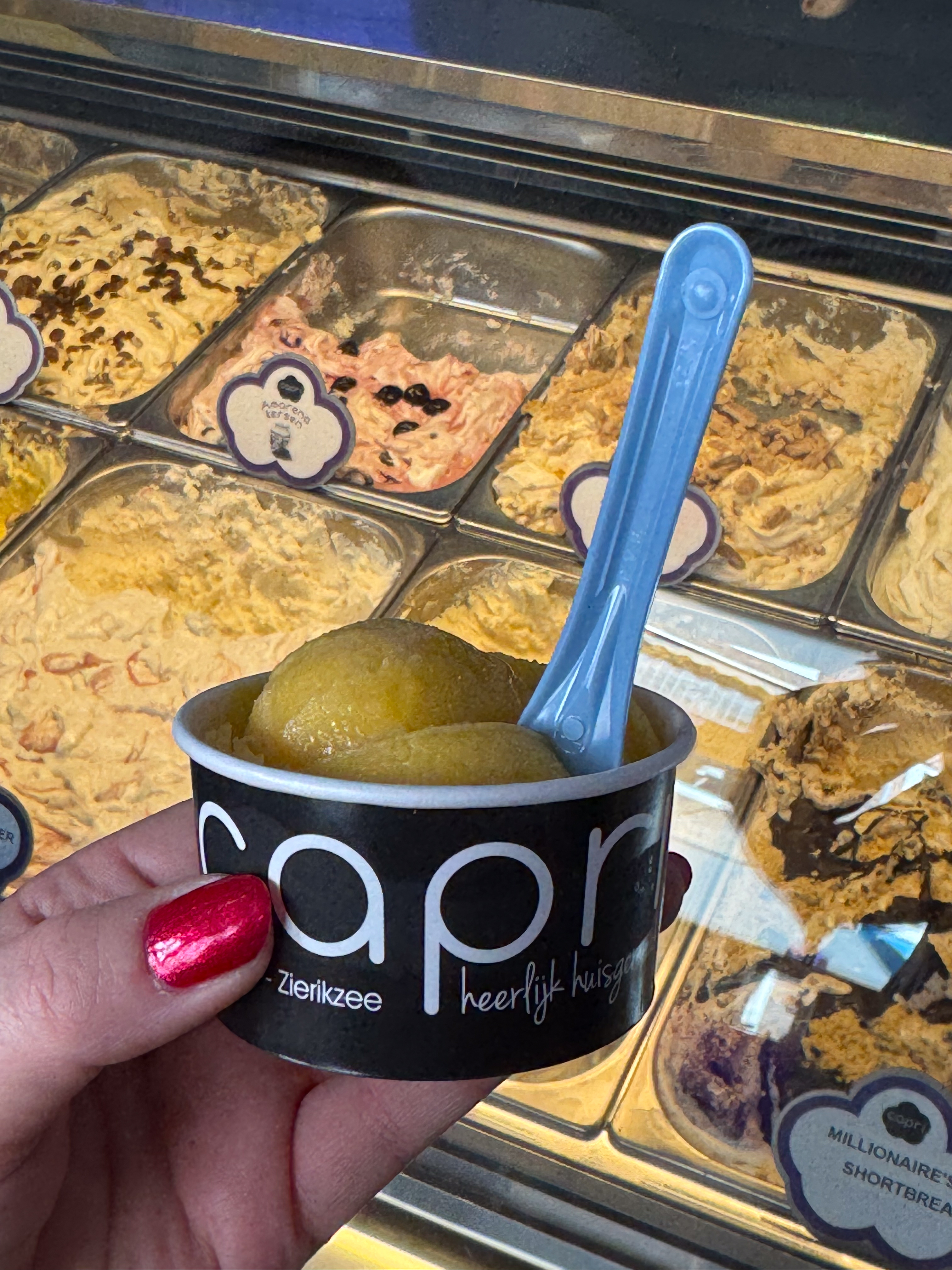 En natuurlijk profiteerden we van het mooie zonnige weer om onderweg een ijsje van Capri te smikkelen.
