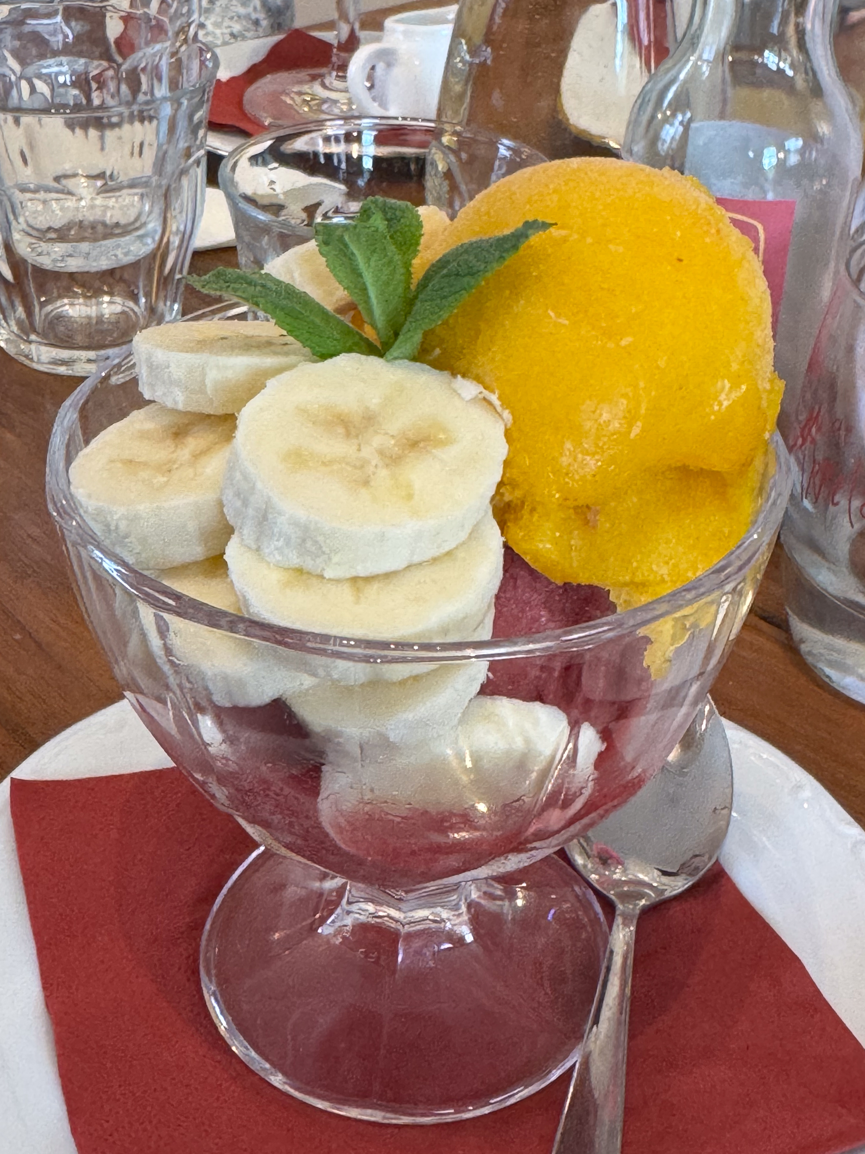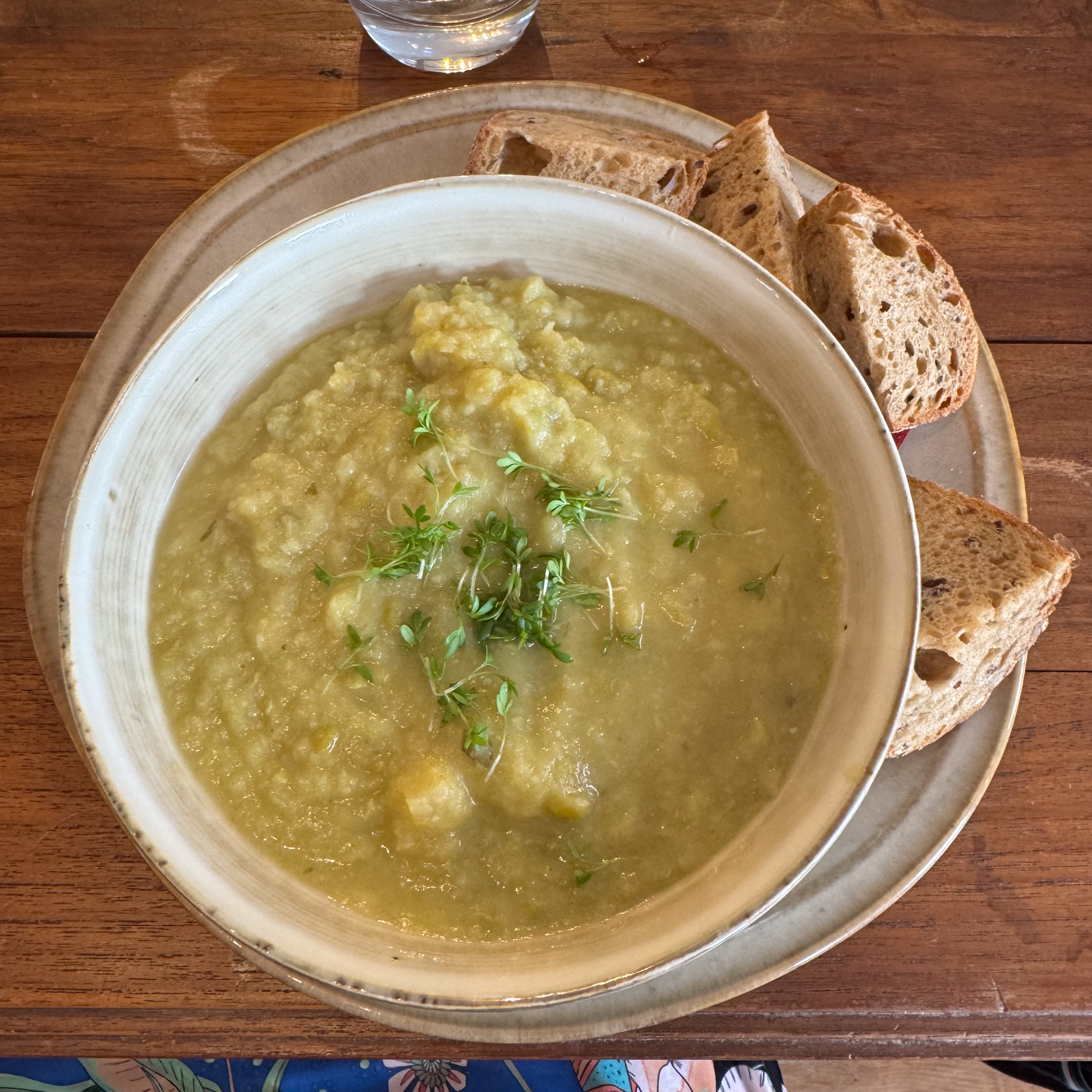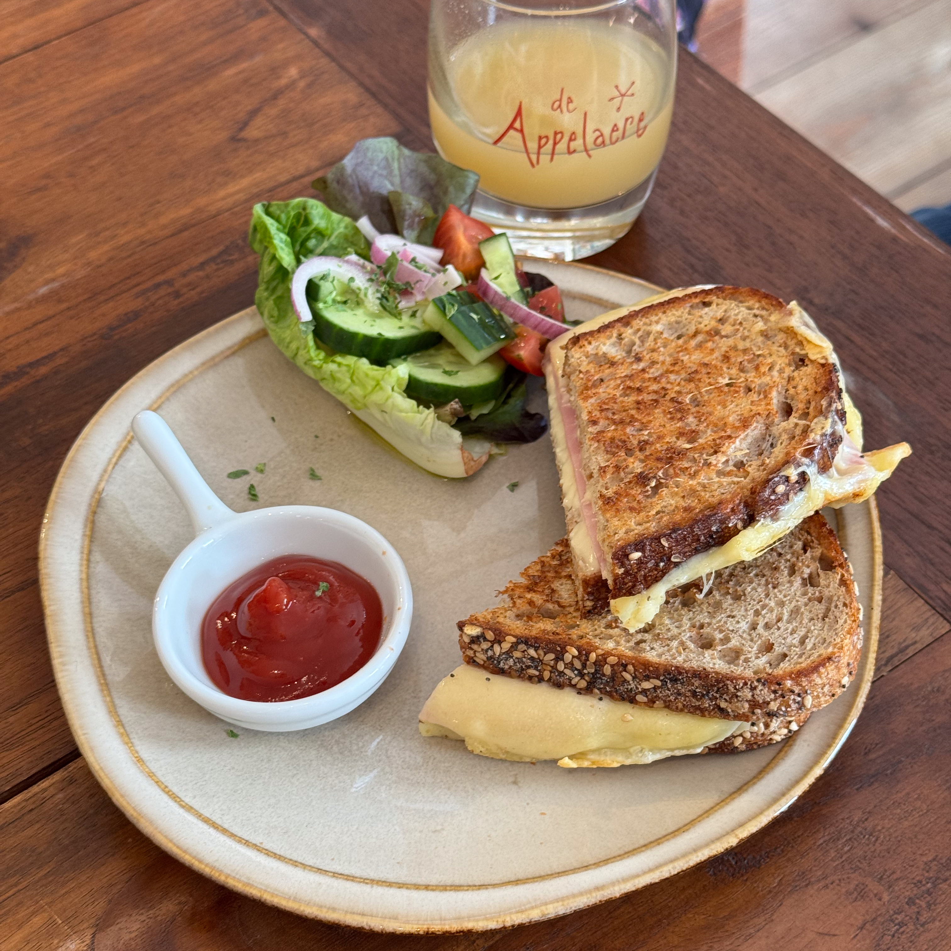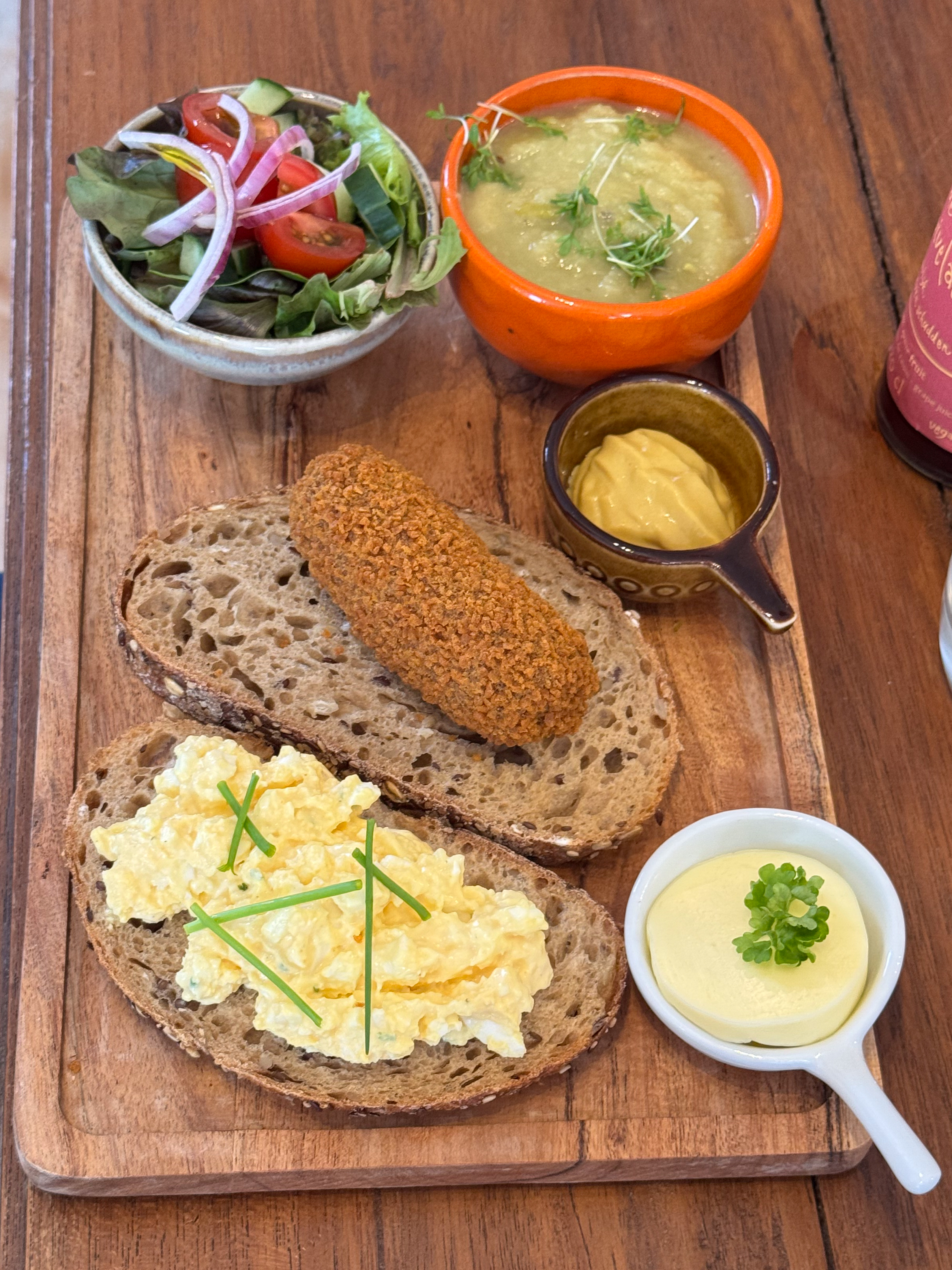Lunchen doen we met typisch Hollandse specialiteiten in het gezellige en huiselijk café-restaurant Chez Nouk. De zaak die uitgebaat wordt door een charmant moeder-dochter duo is duidelijk nog maar pas geopend. Ik houd het bij een (uiteindelijk nog redelijk stevig) soepje, want ik ben mijn ontbijt nog aan het verteren. Sommige in ons gezelschap hebben zelfs nog plek voor een dessertje, maar dat laat ik toch aan mij voorbij gaan.