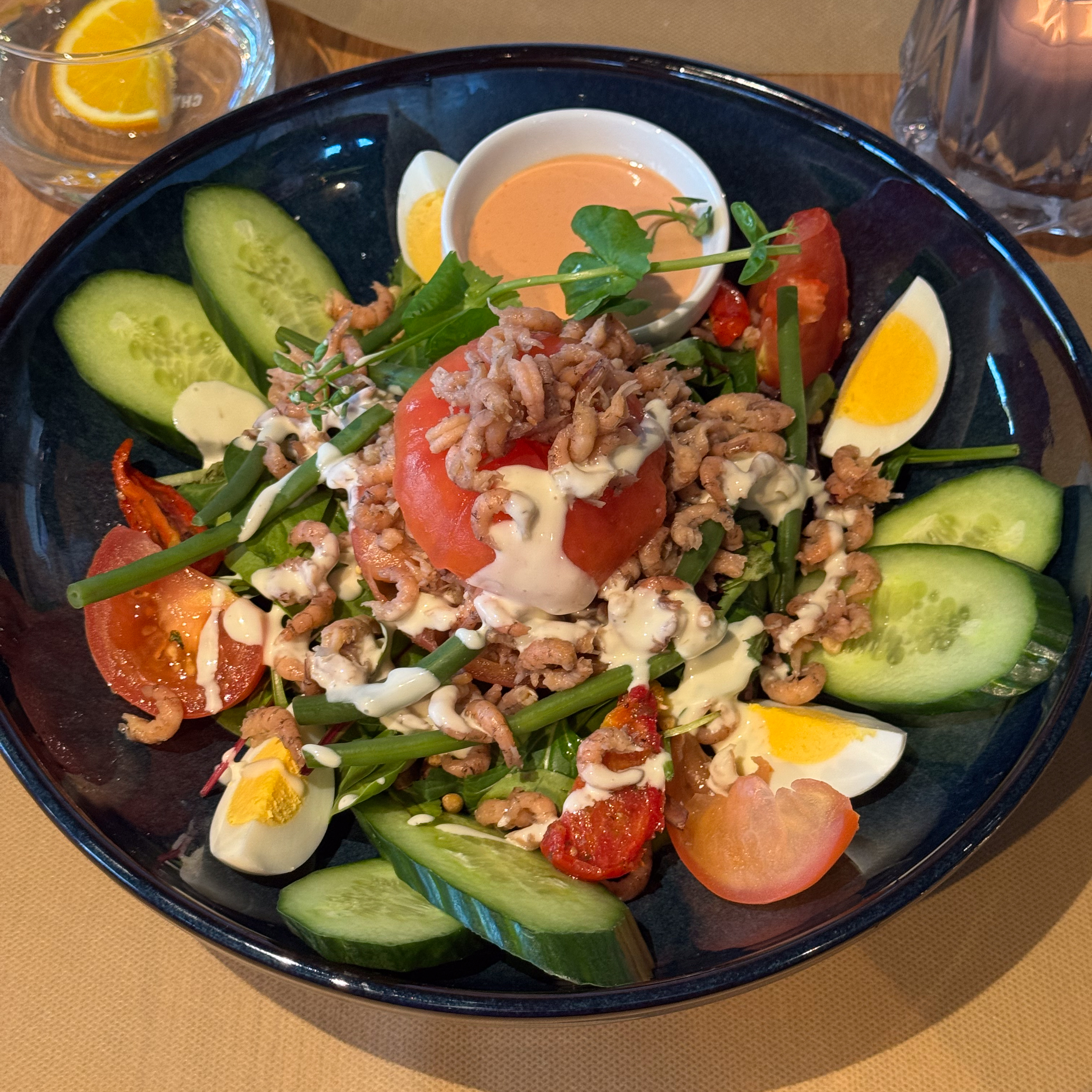 Wij genoten alvast van de lekkere brasseriekeuken van De Torenhoeve. De porties waren stevig, al vermoed ik dat deze nog wel zullen verkleinen als de kok zijn voorraadbeheer beter onder controle heeft. Enige valse nood: de kaassaus van de macaroni met jonge Brugse kaas, die de oudste zoon van onze vrienden besteld had, was zuur. Geen probleem: het personeel nam het gerecht meteen terug naar de keuken en we kregen een alternatief aangeboden: een gigantische spaghetti die zo groot was dat onze vrienden nog een halve spaghetti mee naar huis konden nemen. Op de service valt alvast niets aan te merken. En ik heb oprecht genoten van mijn rundscarpaccio en tomaat garnaal (met keiveel garnalen, hoera!)