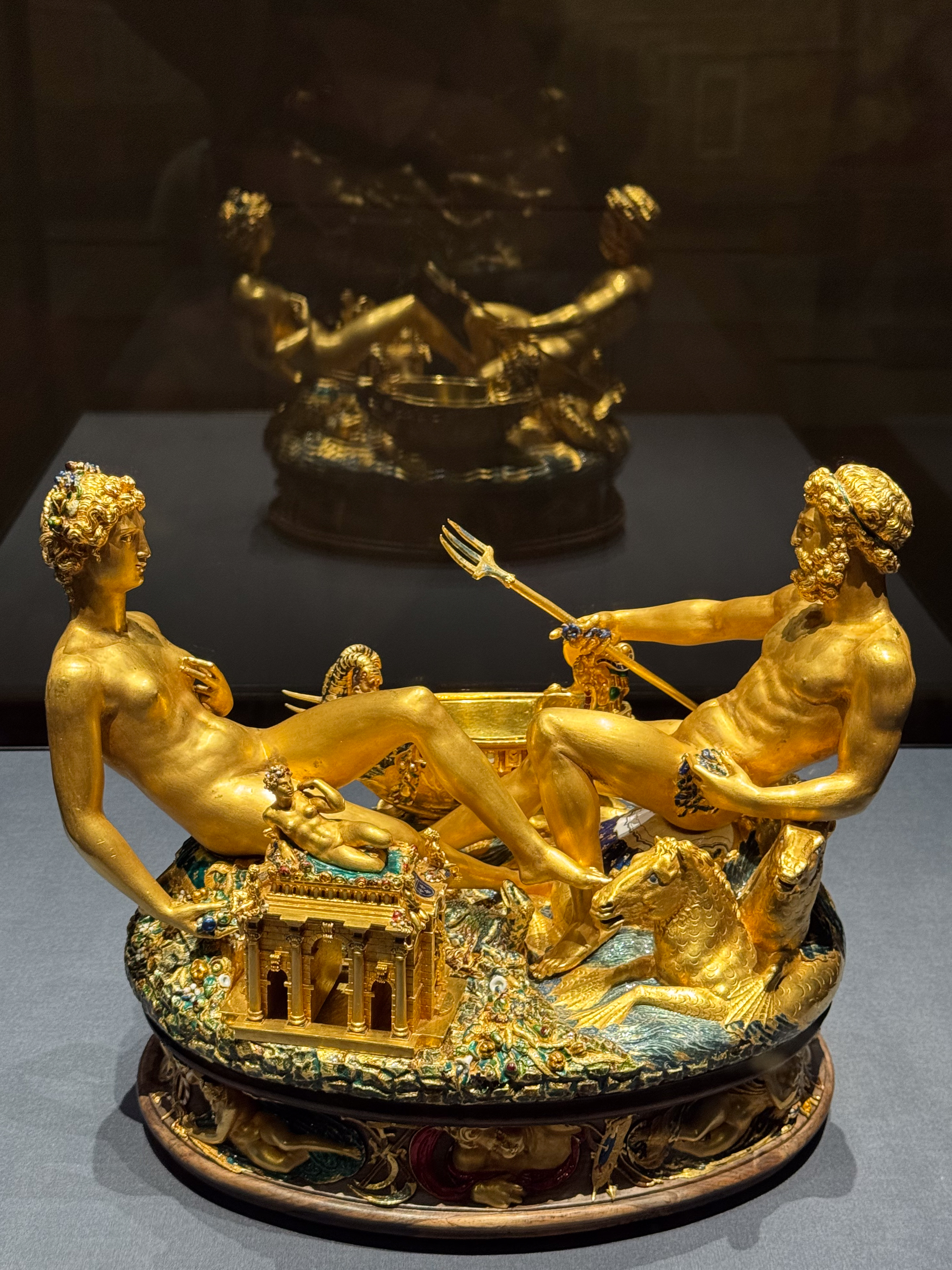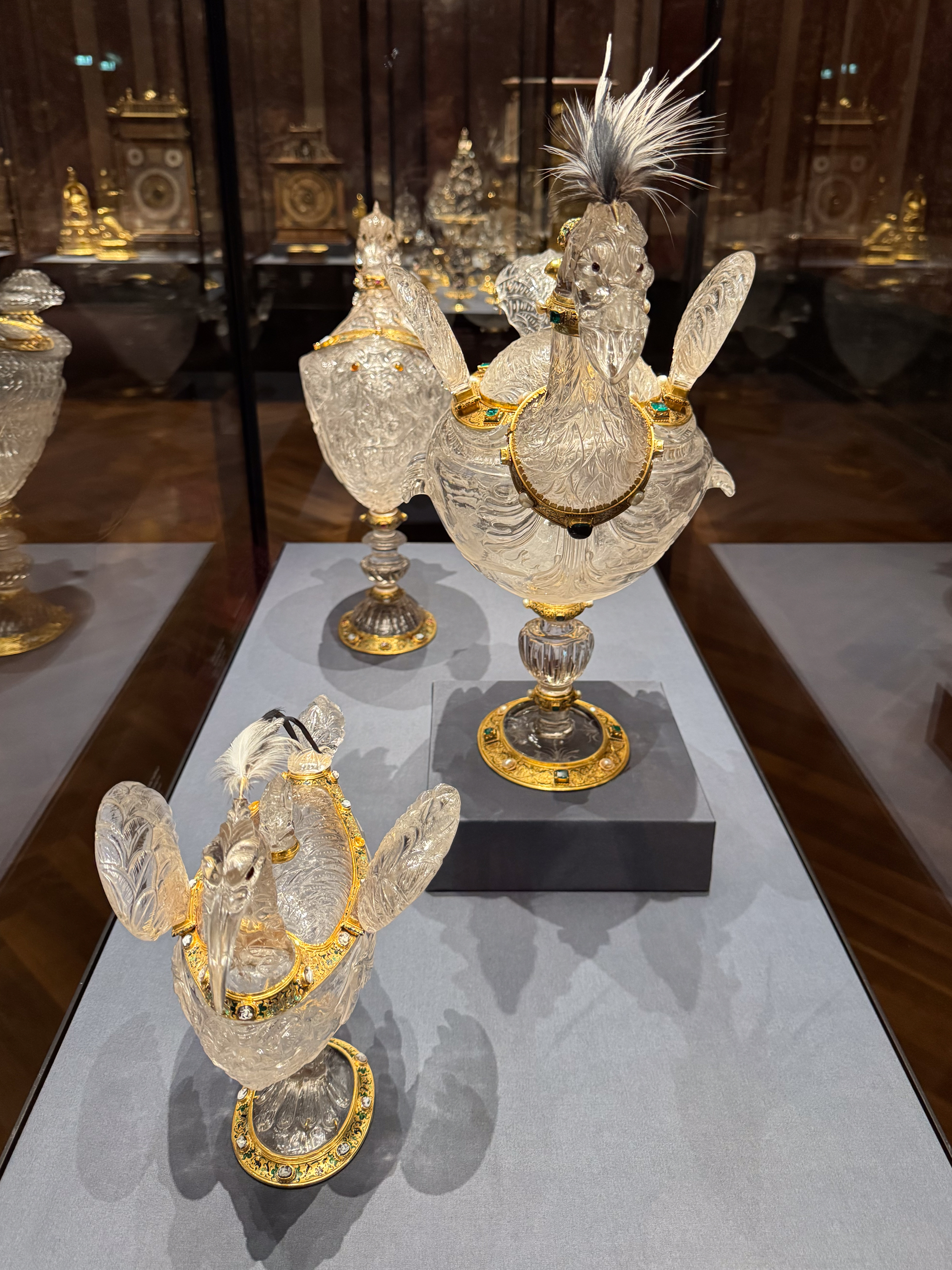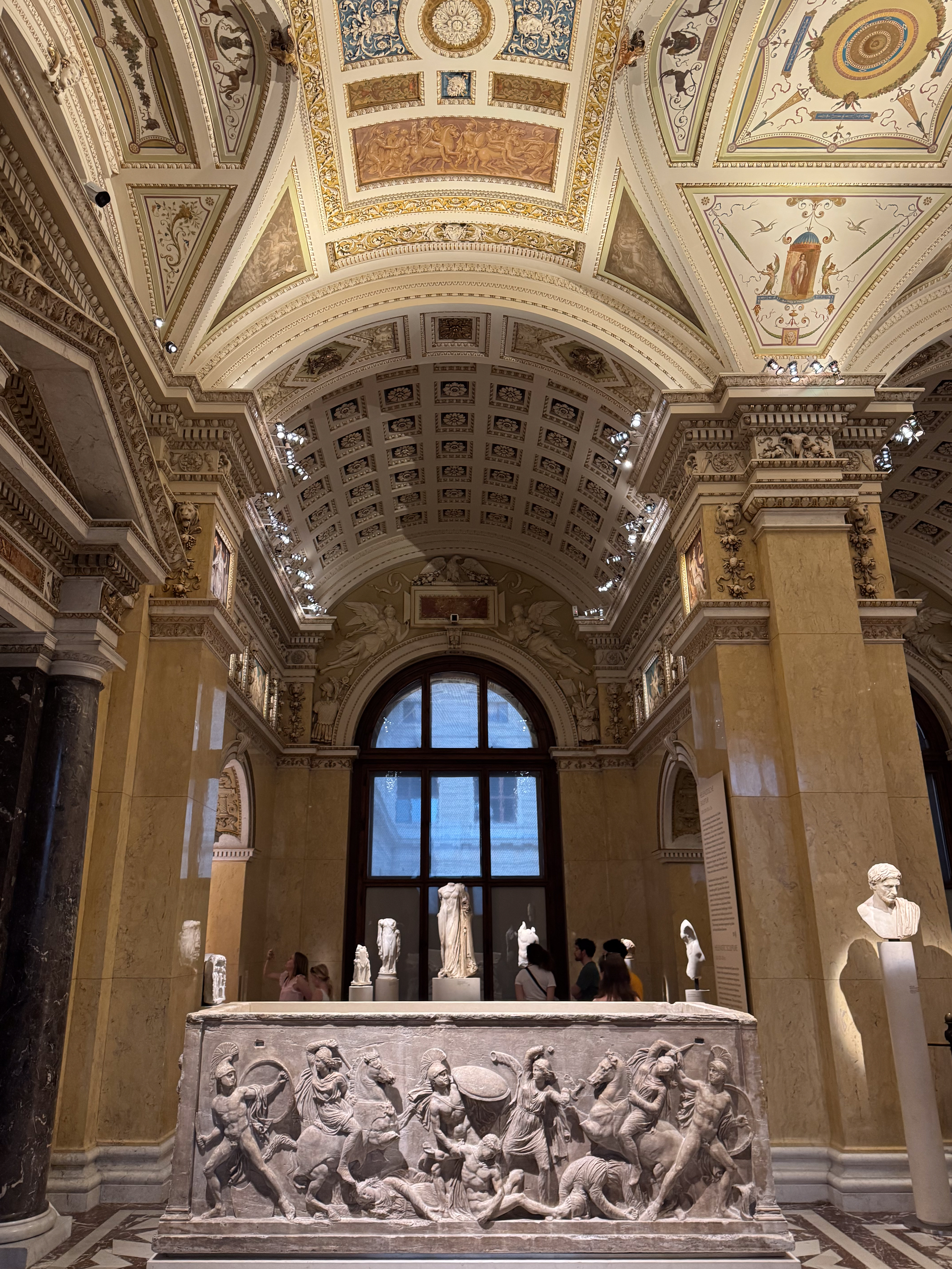 We bergen onze spullen op in de lockers en beginnen aan onze verkenning van het Kunsthistorische Museum. Aangezien het voor mij de eerste keer is dat ik dit museum bezoek, wist ik op voorhand niet goed wat te verwachten. Qua omvang en gestolen kunstschatten blijkt dit museum het Neues Museum in Berlijn te benaderen. Wat een overvloed! We spreken op voorhand af dat we ons zullen beperken tot de afdelingen met Egyptische, Griekse en Romeinse kunst. Maar dan belanden we in de Kunstkammer, tjokvol met prachtige en waardevolle objecten en moet ik de dames tot ietwat spoed aanmanen. We willen immers op tijd terug op ons appartement zijn om ons op te tutten voor het concert deze avond in het Börse paleis.