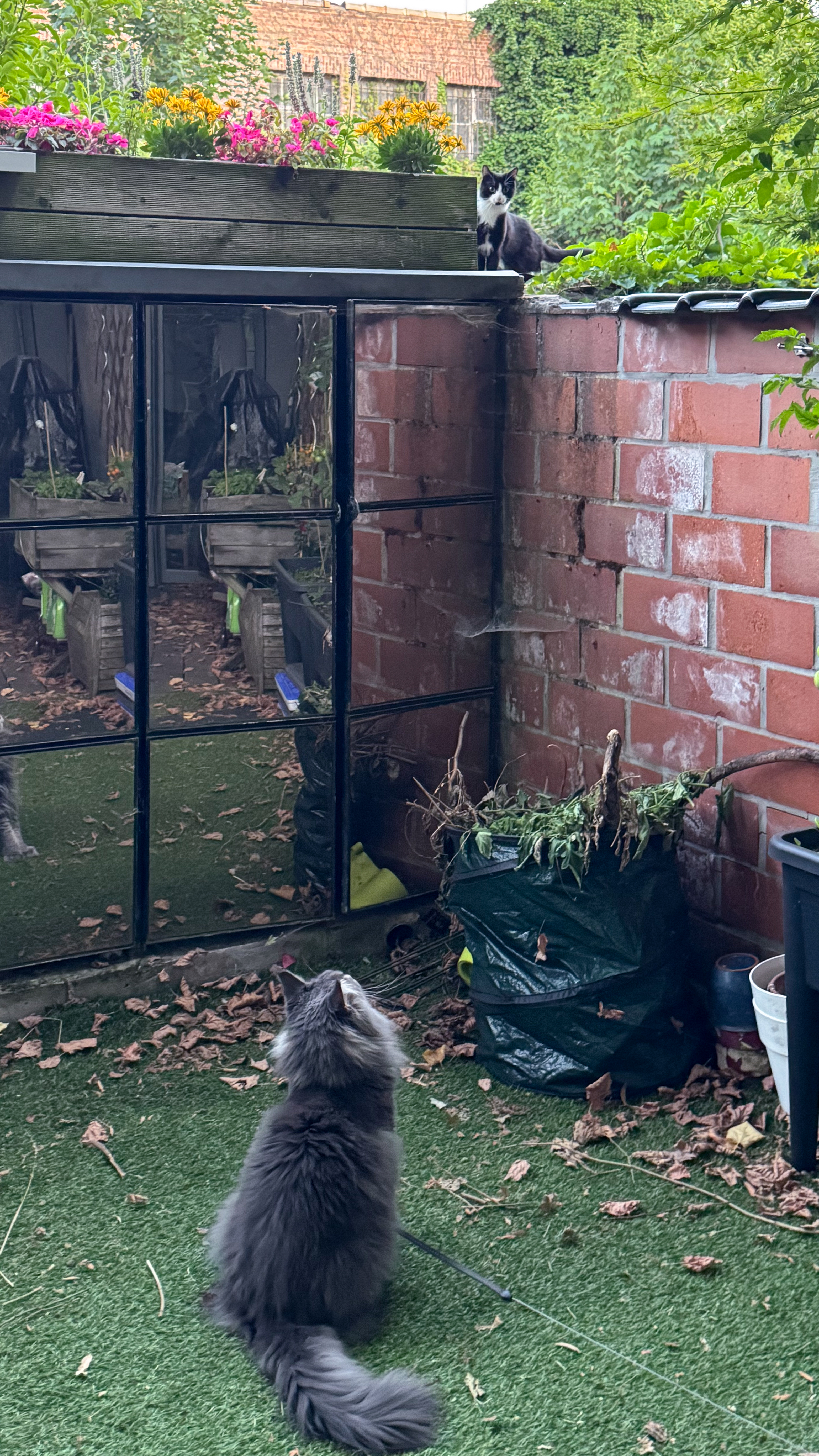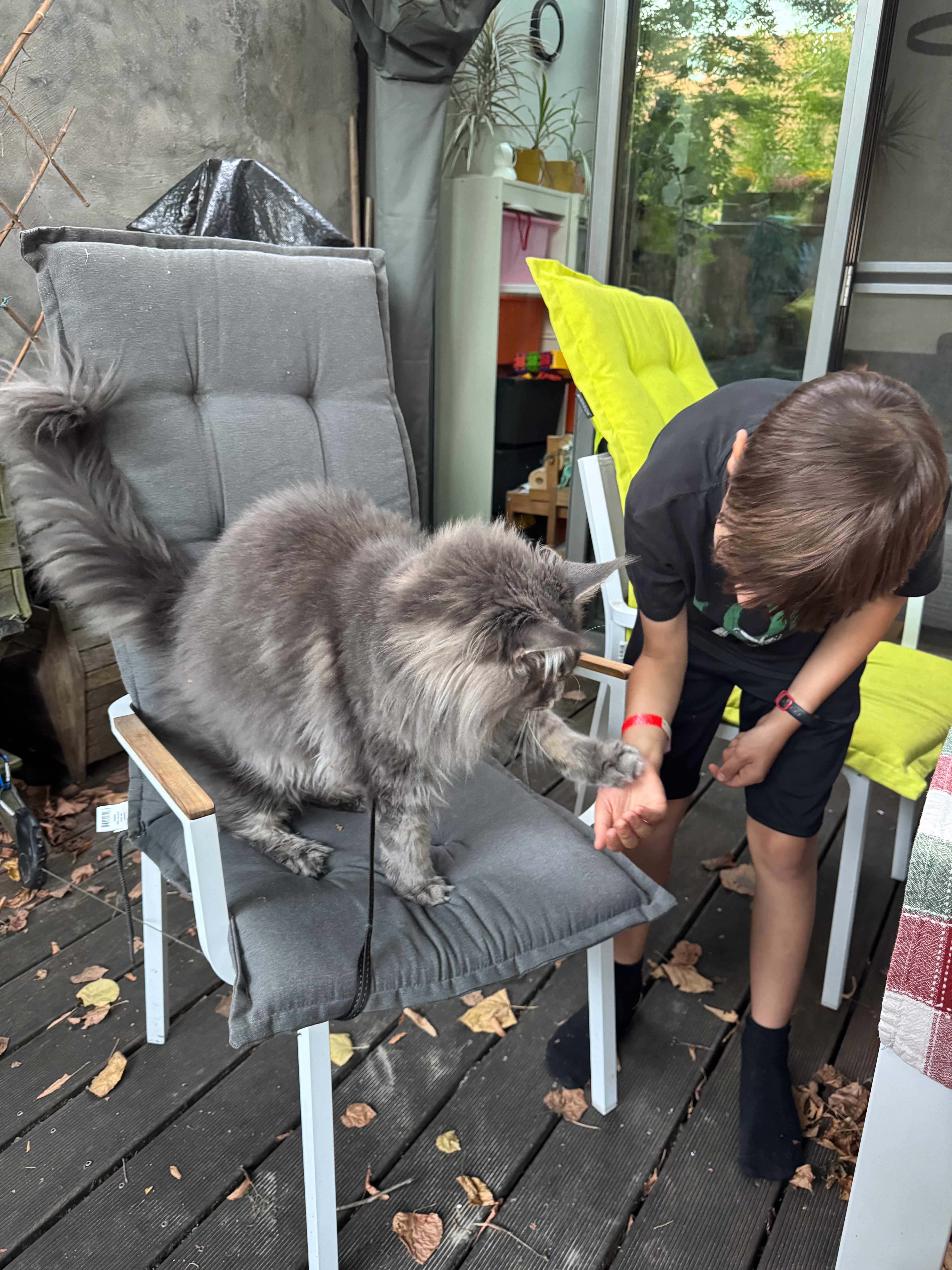 Ster van de avond was uiteraard Rodin, de prachtige Maine Coon van onze vrienden (die duidelijk niet zit te wachten op ander katachtige bezoekers in zijn tuintje).