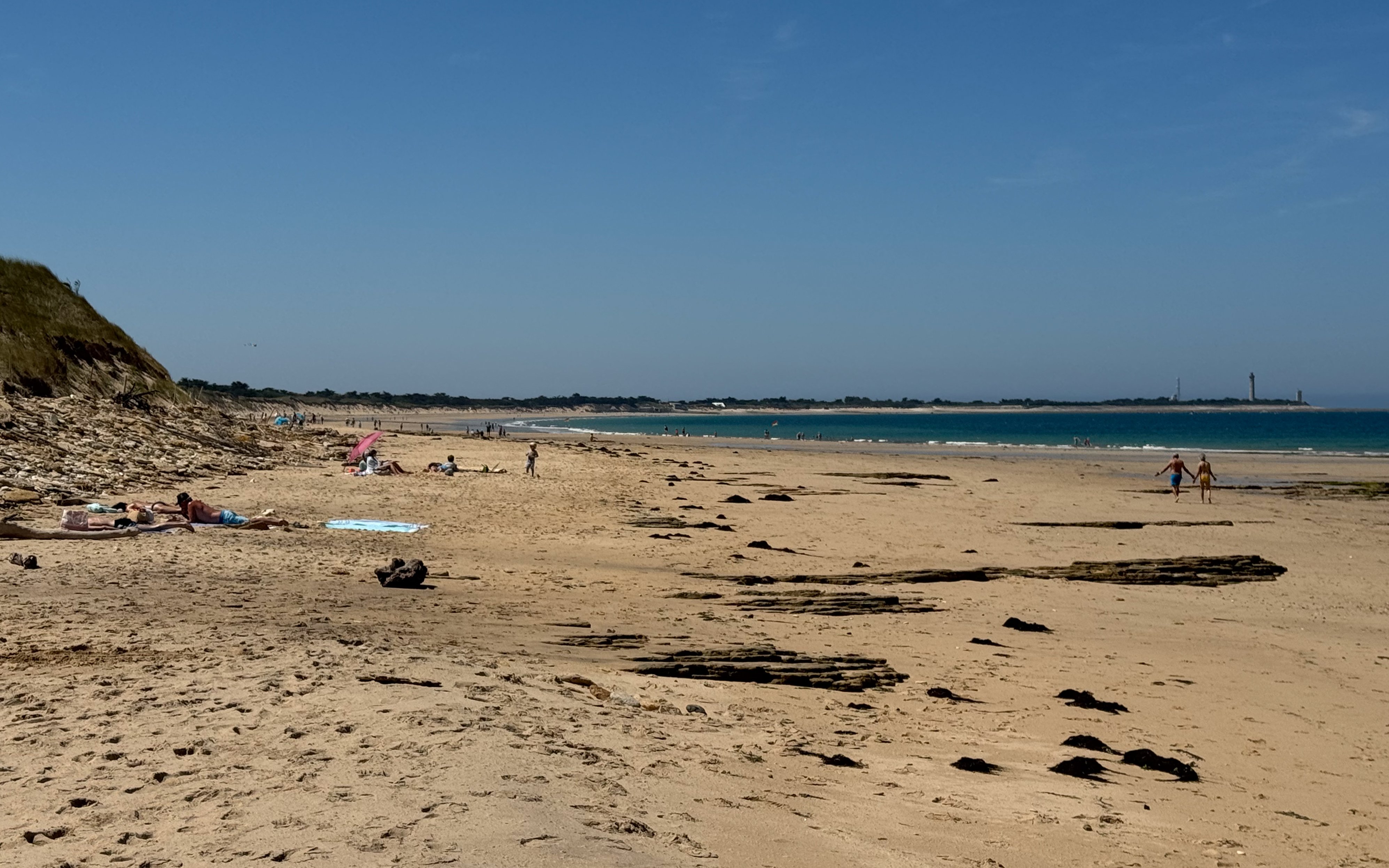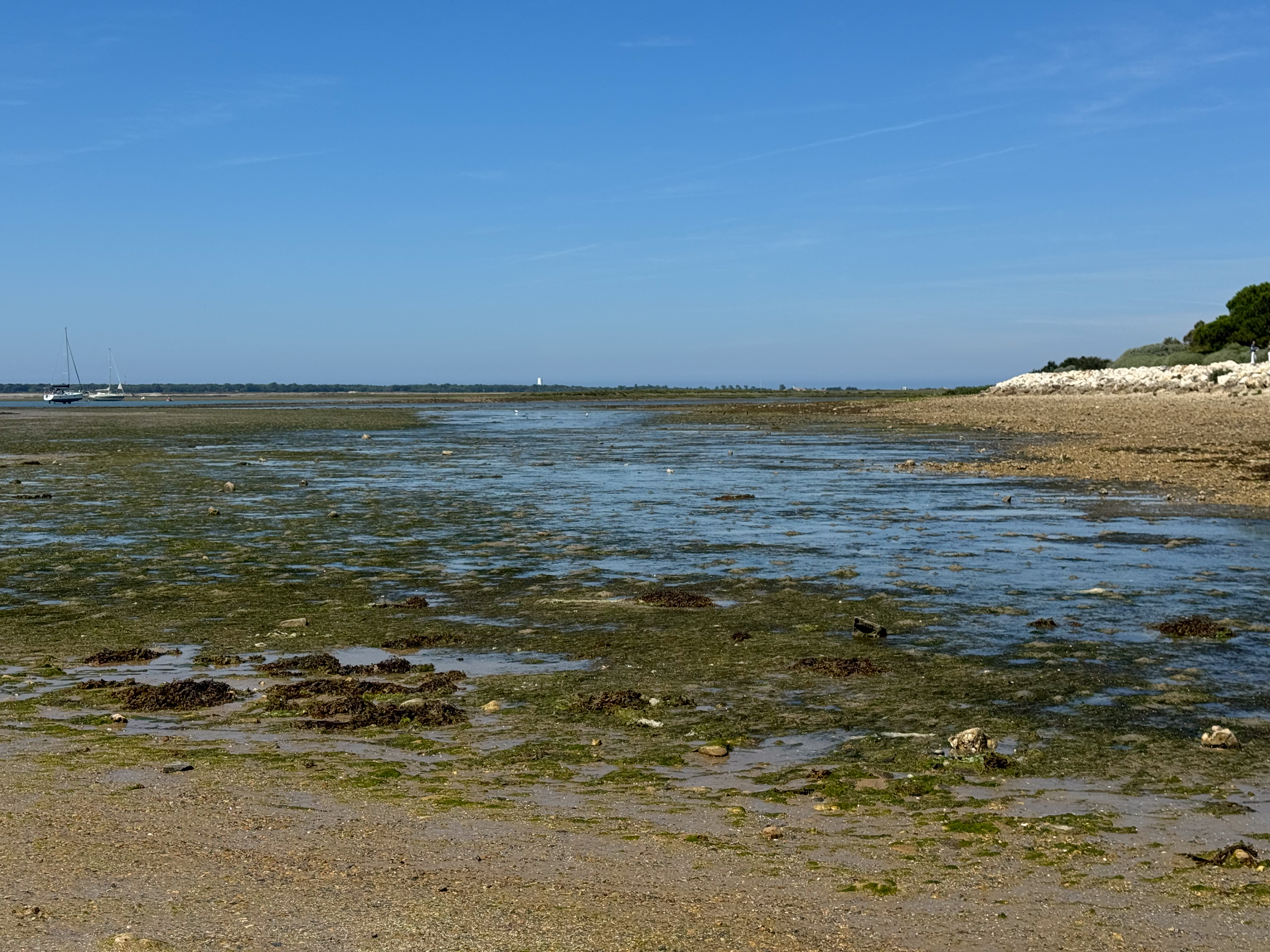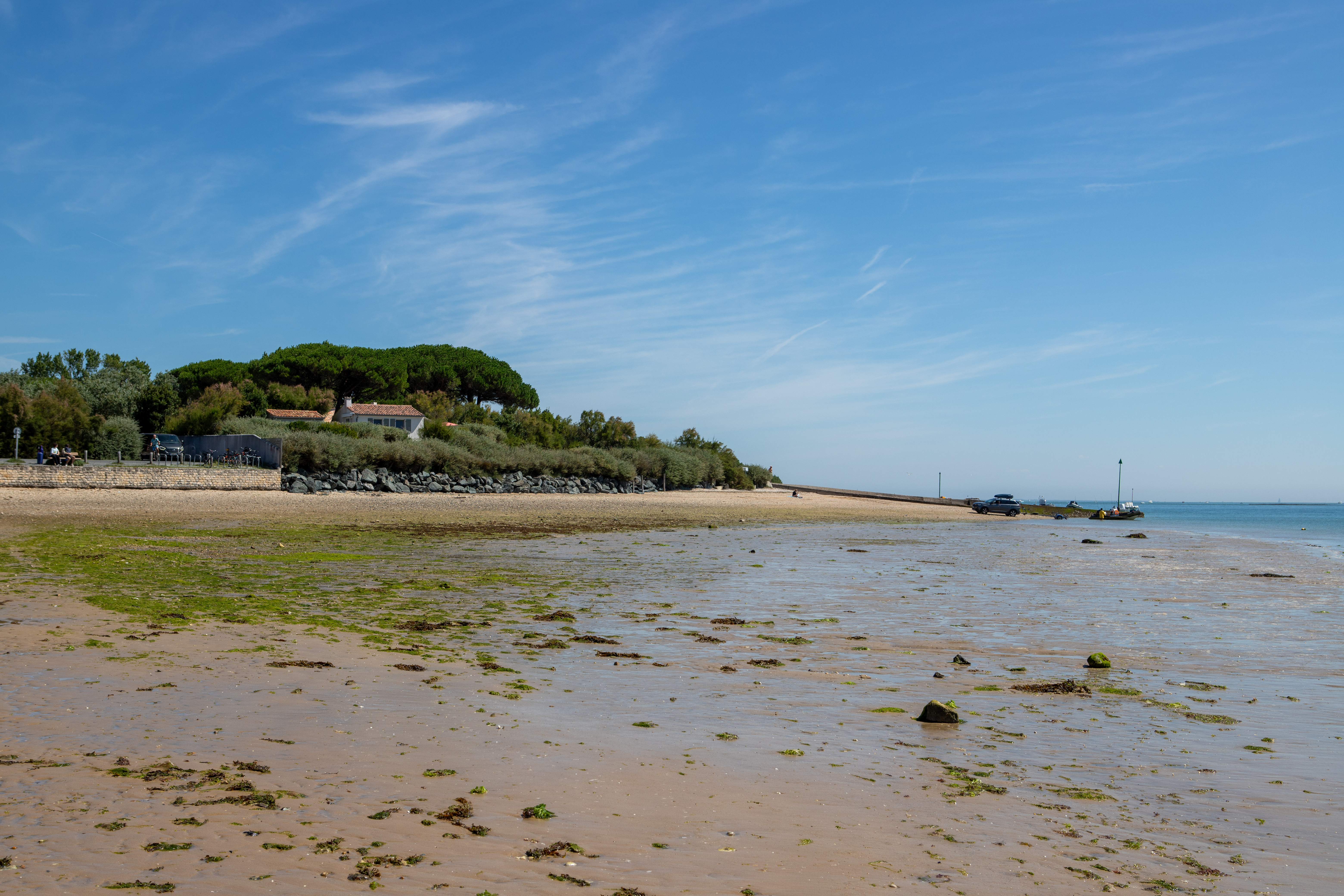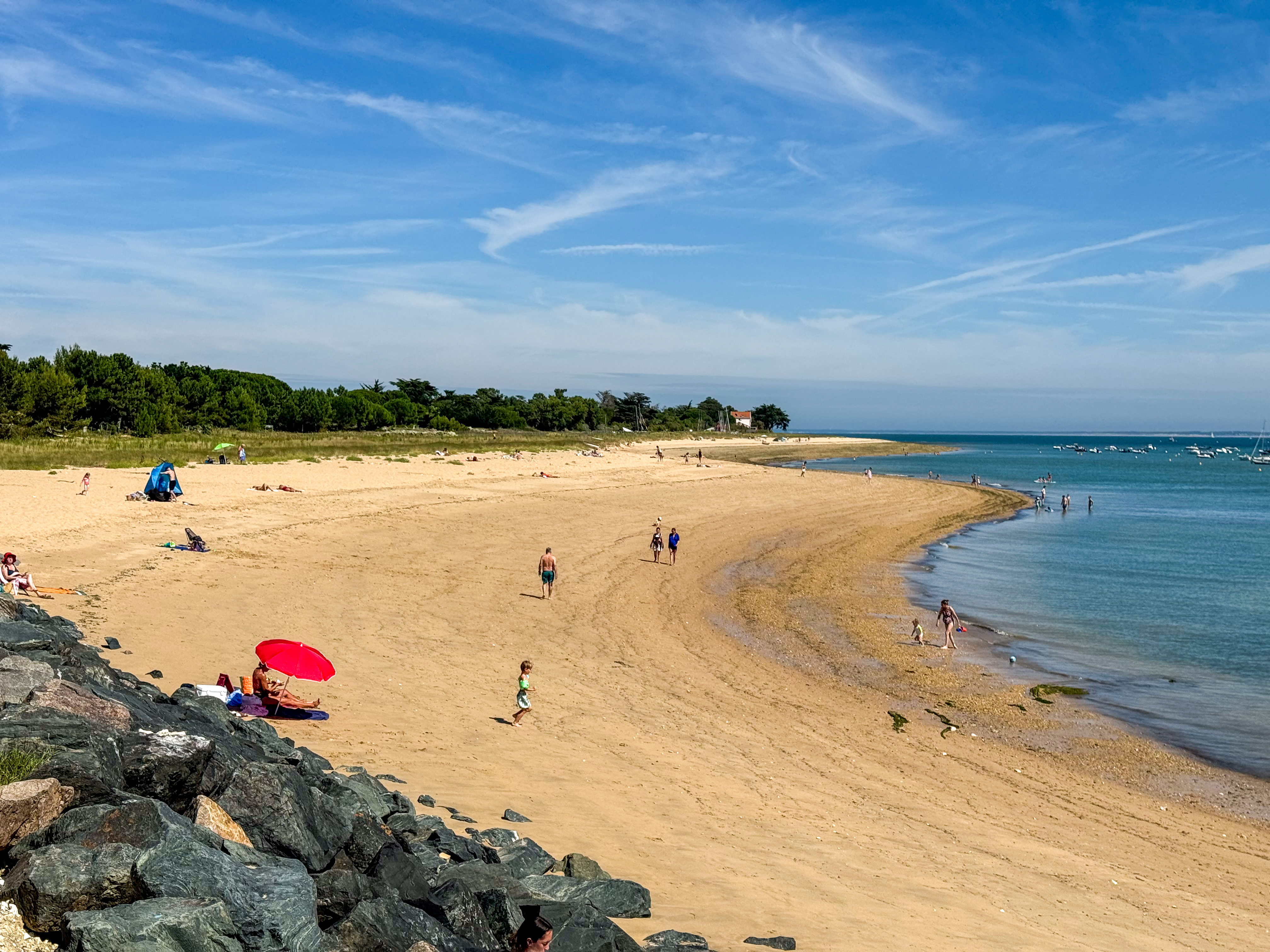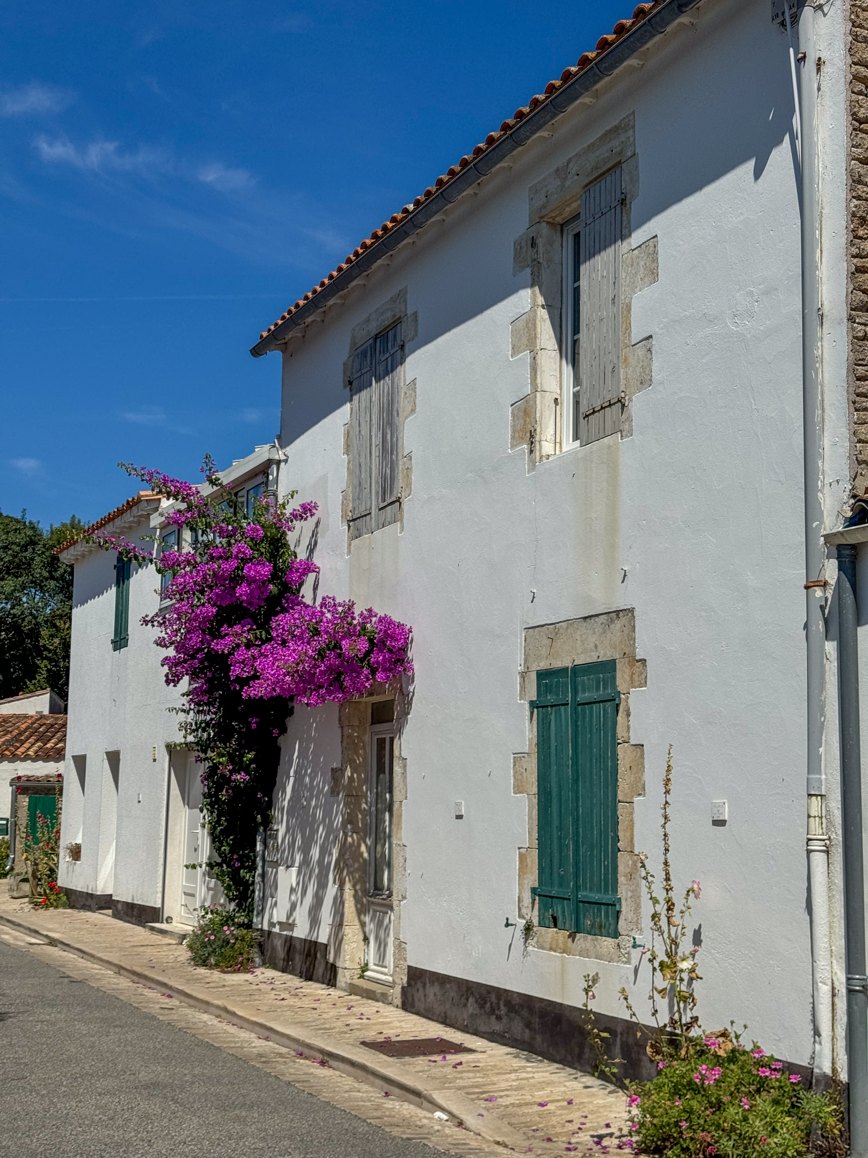 We passeren verschillende stranden: Plage de l’Anse du Fourneau, Plage du Lizay en Plage du Petit Bec. We fietsen door het charmante stadje Les Portes-en-Ré, waar we alweer een marktje tegen komen. Voor de lunch belanden we op het terras van restaurant L’Excuse in Saint-Clément-des-Baleines, waar het aangenaam zitten is aan het zwembad en ik een lekker stukje vis eet en een colonel als dessert.