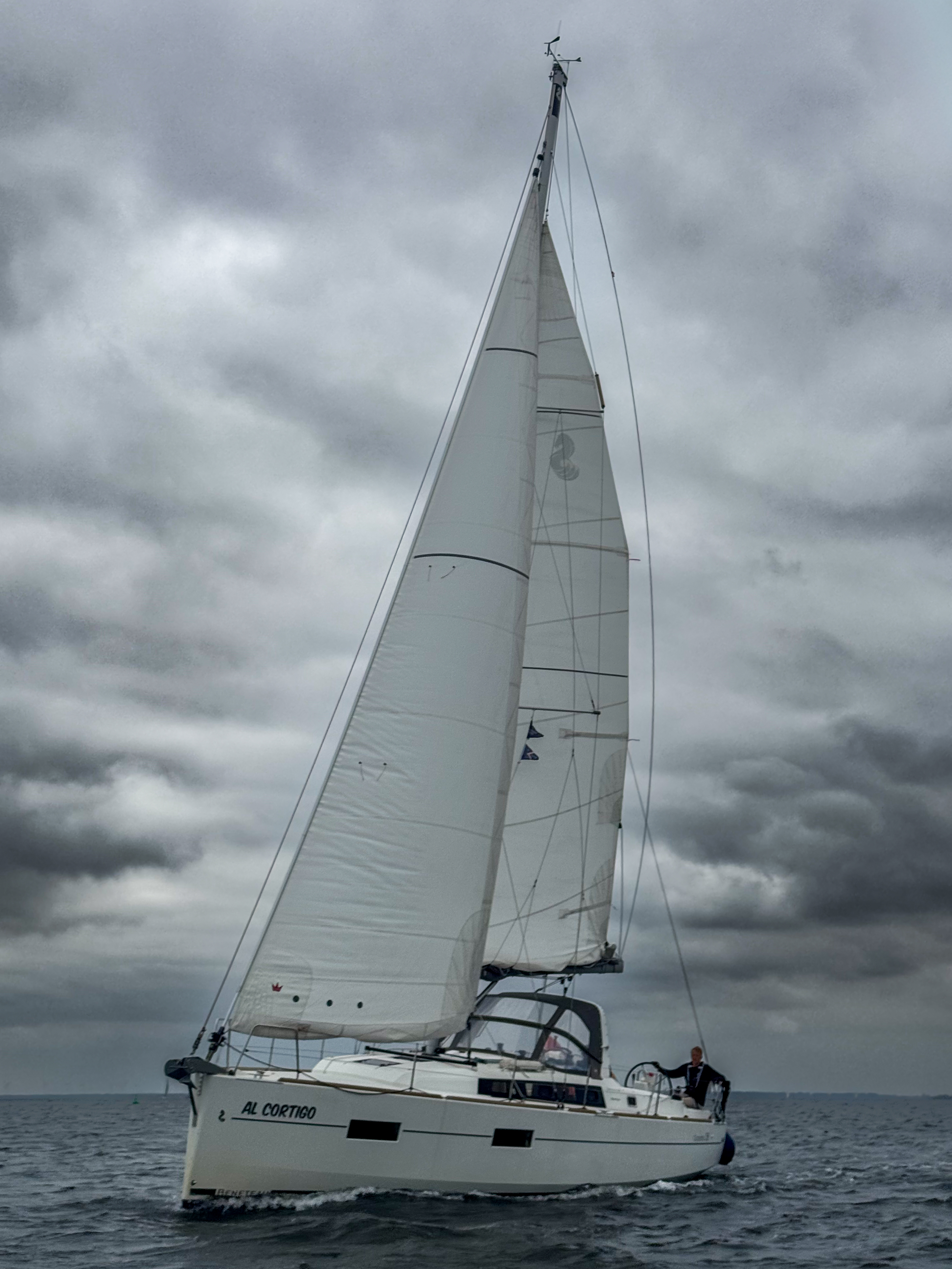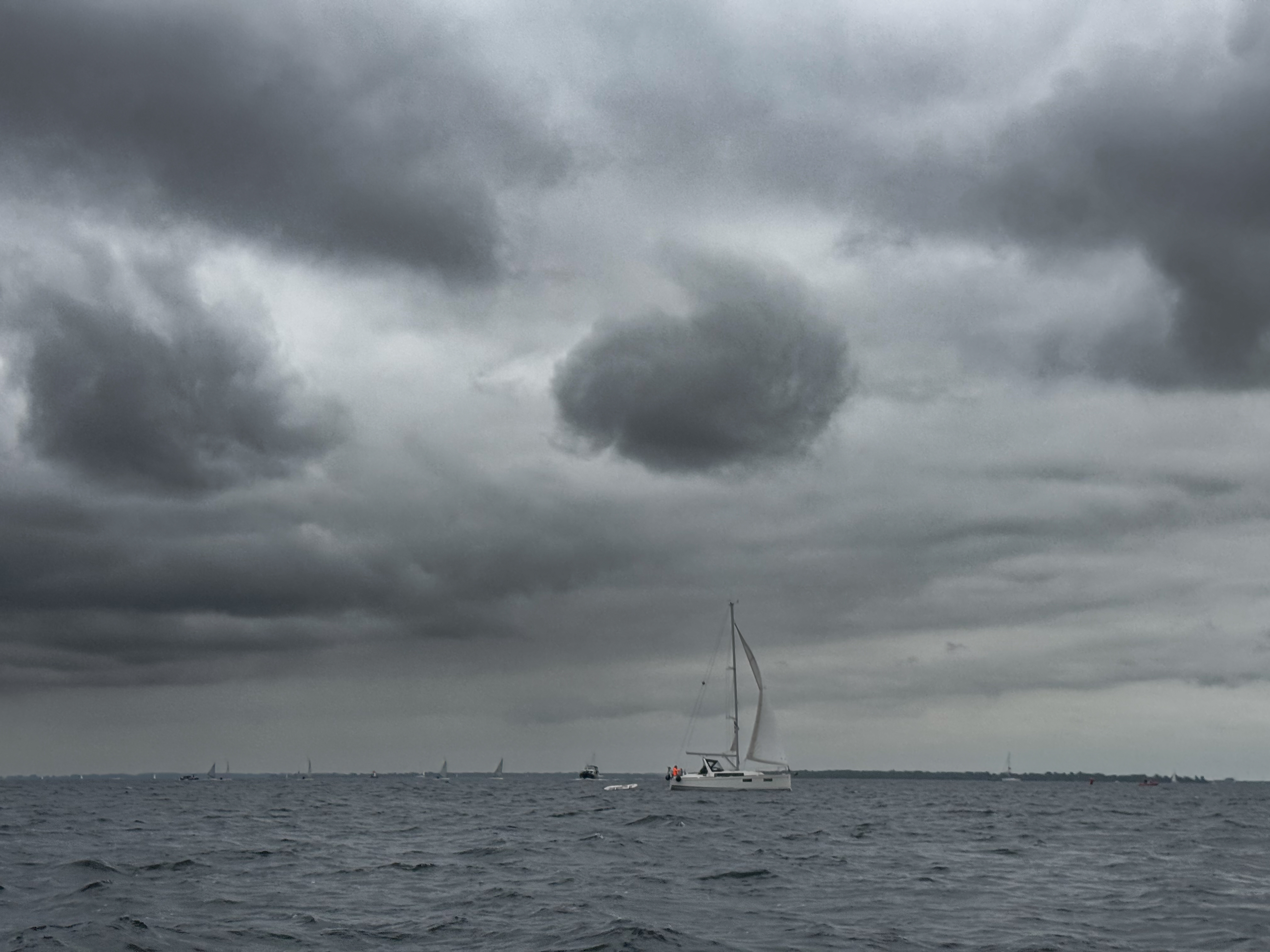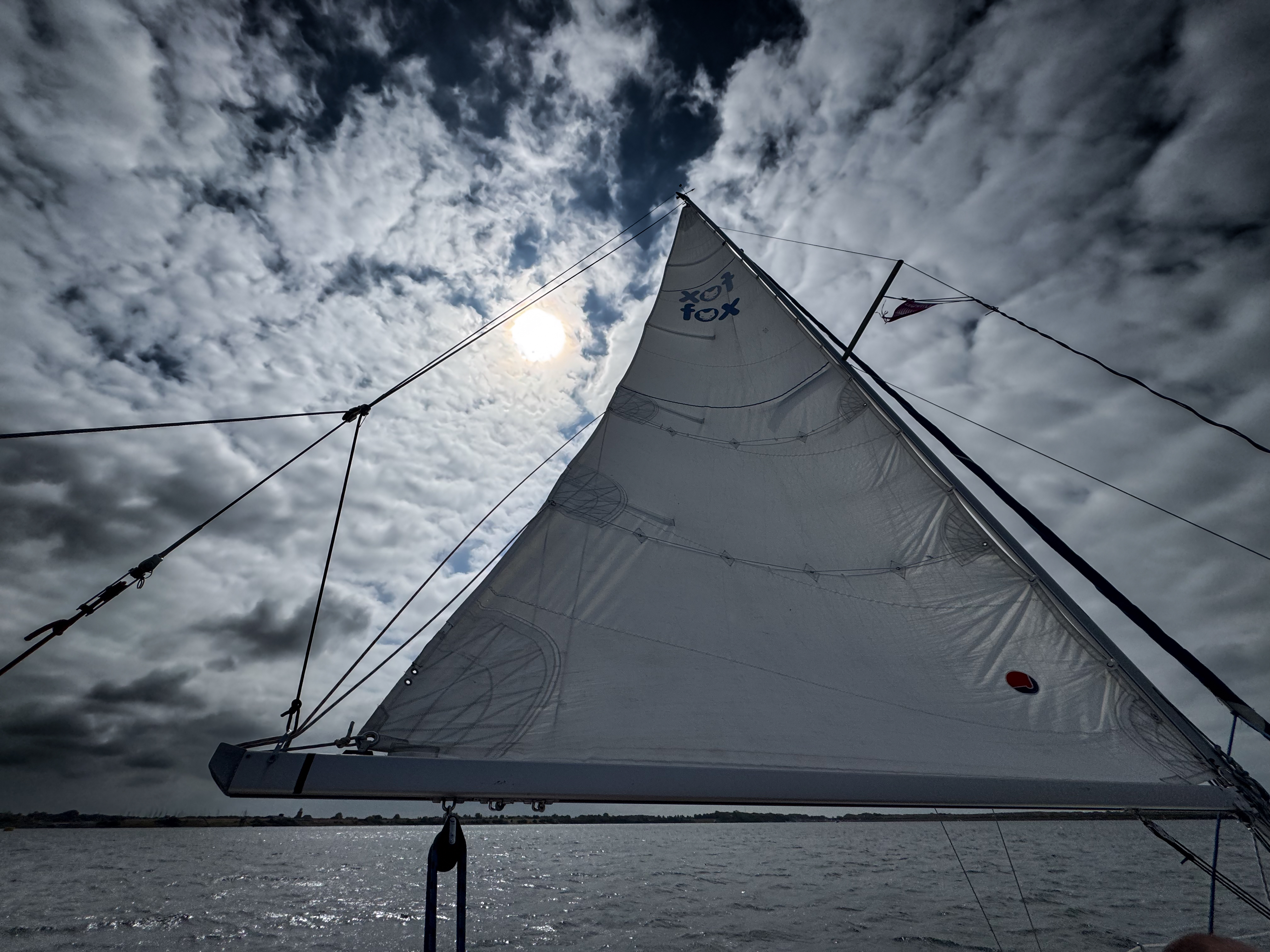Omdat we niets anders deden dan op en af varen op dezelfde plek was de zeilervaring voor mij een beetje saai, ik had gehoopt een mooie, grote tocht te kunnen maken. Het weer viel ook tegen. De zon bleef zich maar verstoppen achter het wolkendek en ik was bijzonder blij dat ik mijn mooie nieuwe regenjas kon aandoen om me warm te houden. Het had voor mij gerust tien graden warmer mogen zijn.