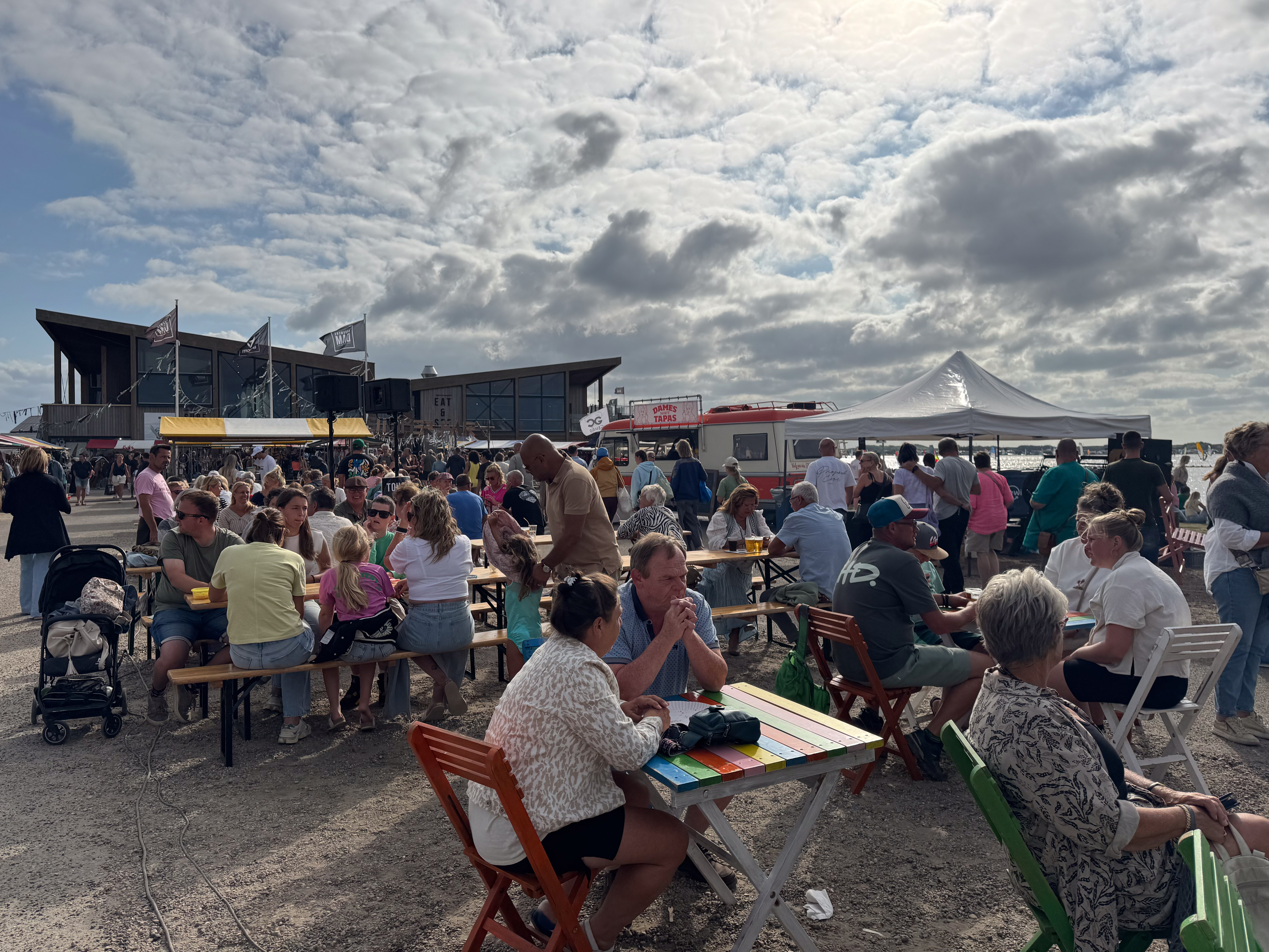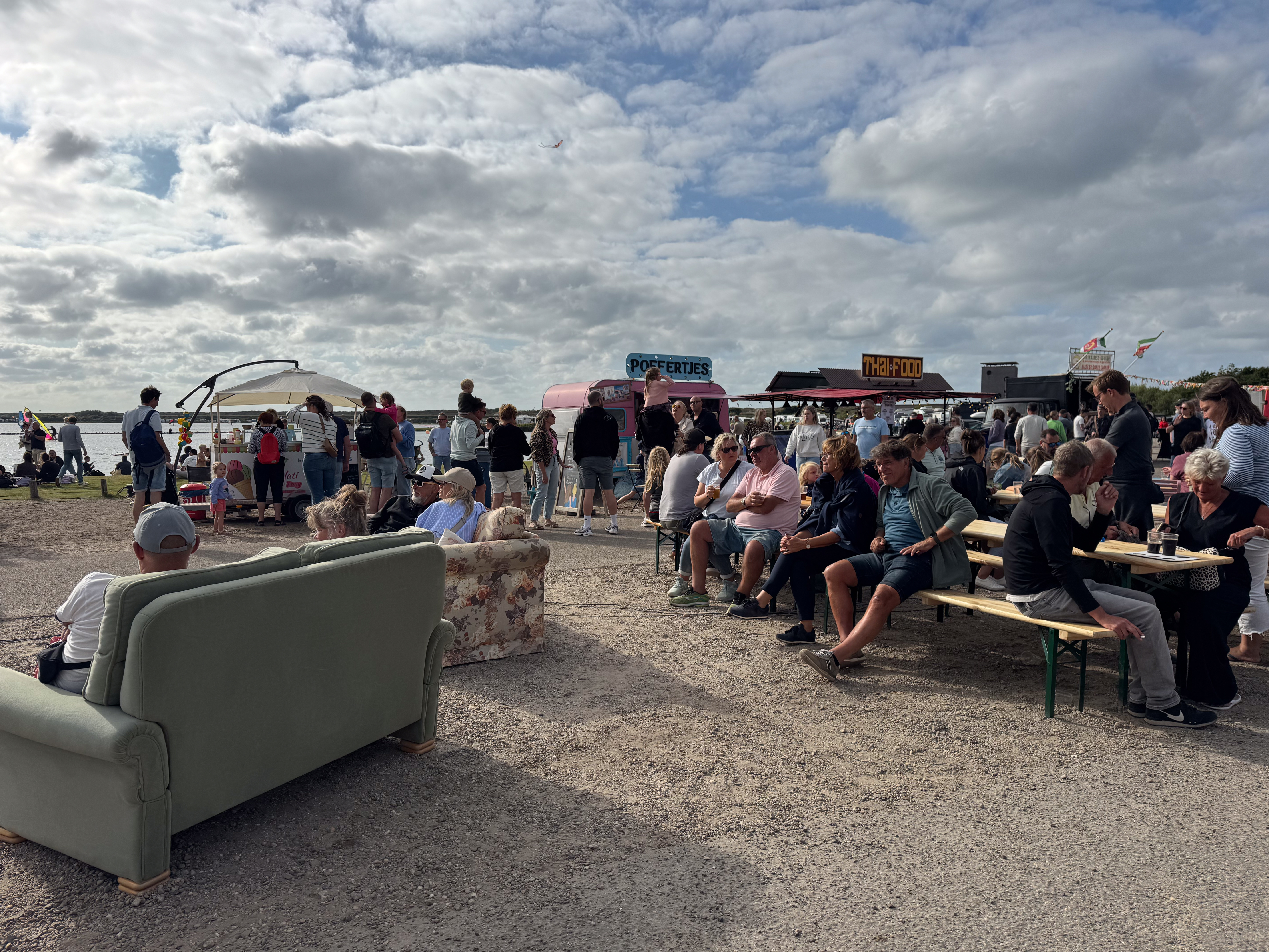 Rond kwart na tien troffen we elkaar in hotel Azul waar we al de kaart voor de kamer kregen en onze valiezen konden achter laten in de lobby. We reden vervolgens meteen door naar Brouwersdam om aan onze tocht op het Grevelingenmeer te beginnen. Jammer genoeg liet de zon het vandaag afweten en was het grauw en grijs. We werden door het personeel van Brouwersdam naar onze zeilboot begeleid en vervolgens begon het inladen. Verrassend hoeveel proviand er in zo’n klein bootje kan, want naar goede gewoonte hadden we een voorraad bij die minstens voor twee dagen kon dienen. Mochten we verdwalen op het Grevelingenmeer, zouden we alvast niet omkomen van de honger.