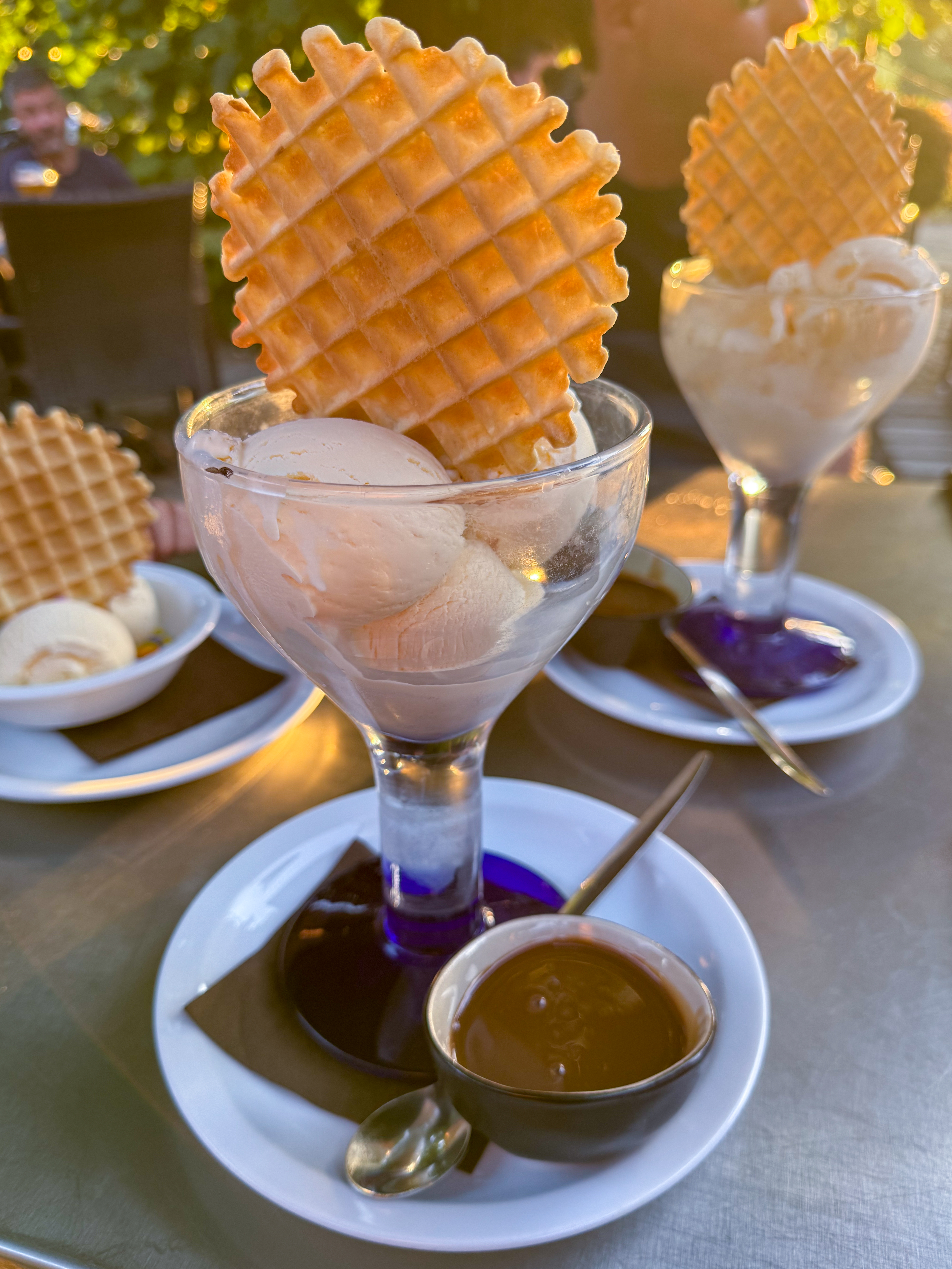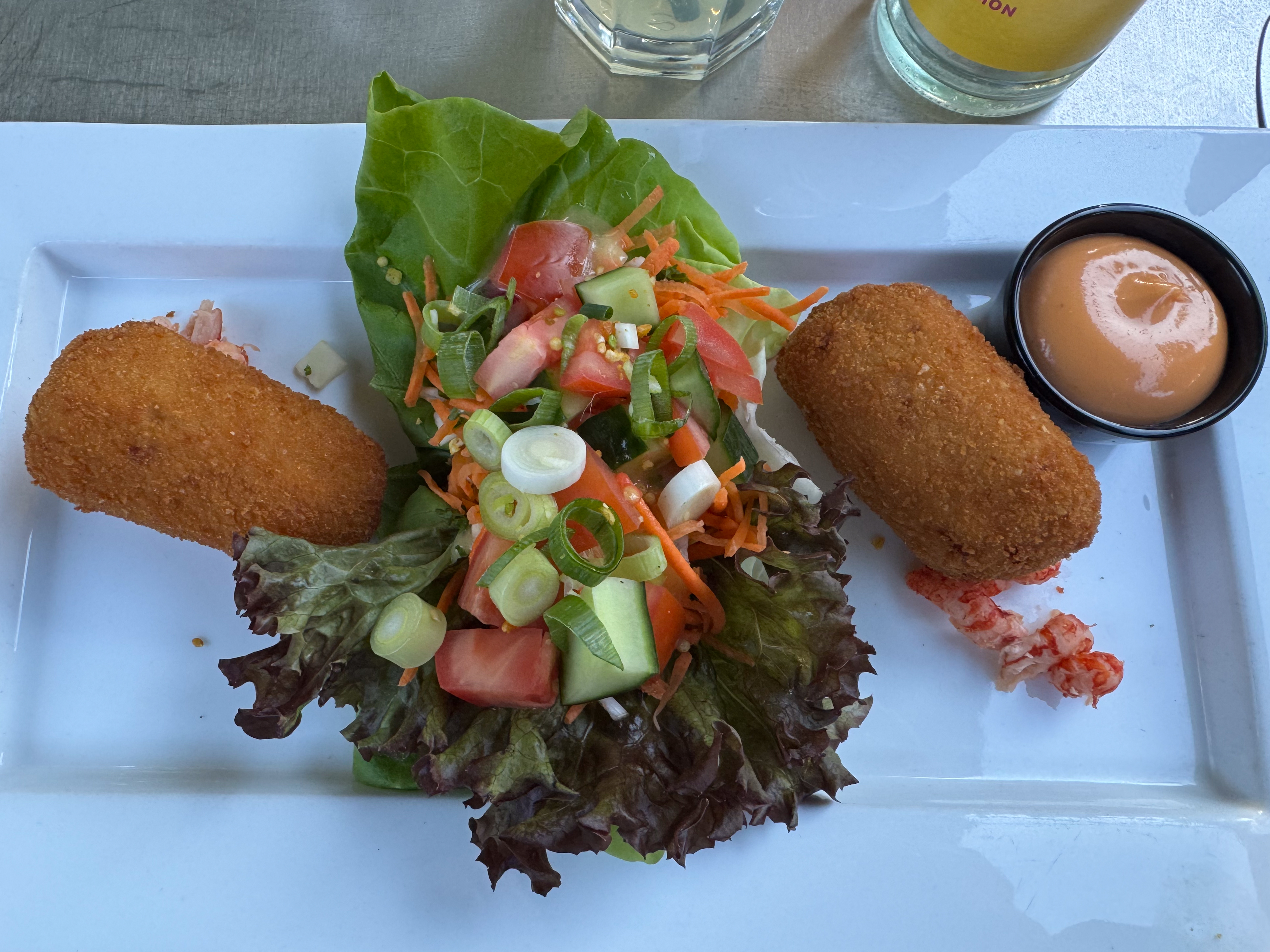De wandeling had zelfs mijn eetlust opgewekt en ik genoot van de portie gemengd (mét augurken en opgelegde uitjes!) en de garnaalkroketten. Er bleef zelfs nog een plekje over voor de redelijk volumineuze dame blanche. Al had ik achteraf het gevoel dat ik toch beter een kinderijsje besteld had.