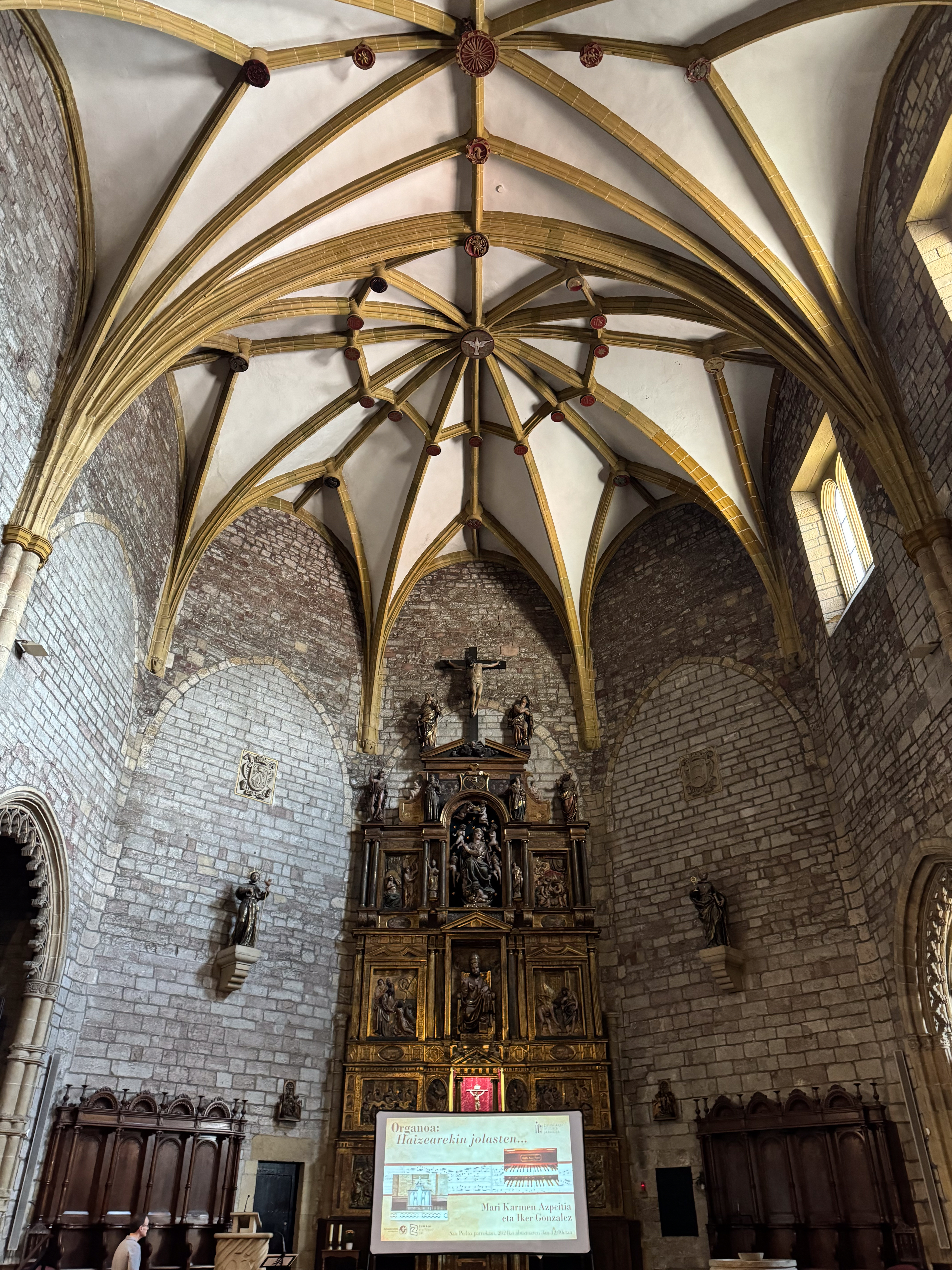 Volgende stop: Zumaia. Een bijzonder aangename ontdekking. Natuurlijk bezoeken we eerst de dorpskerk. En kijk eens aan, we hebben geluk: net op het moment dat wij er binnen stappen is er een orgelconcert aan de gang. We zetten ons op één van de achterste banken en genieten een tijdje van de muziek die ons overspoelt.