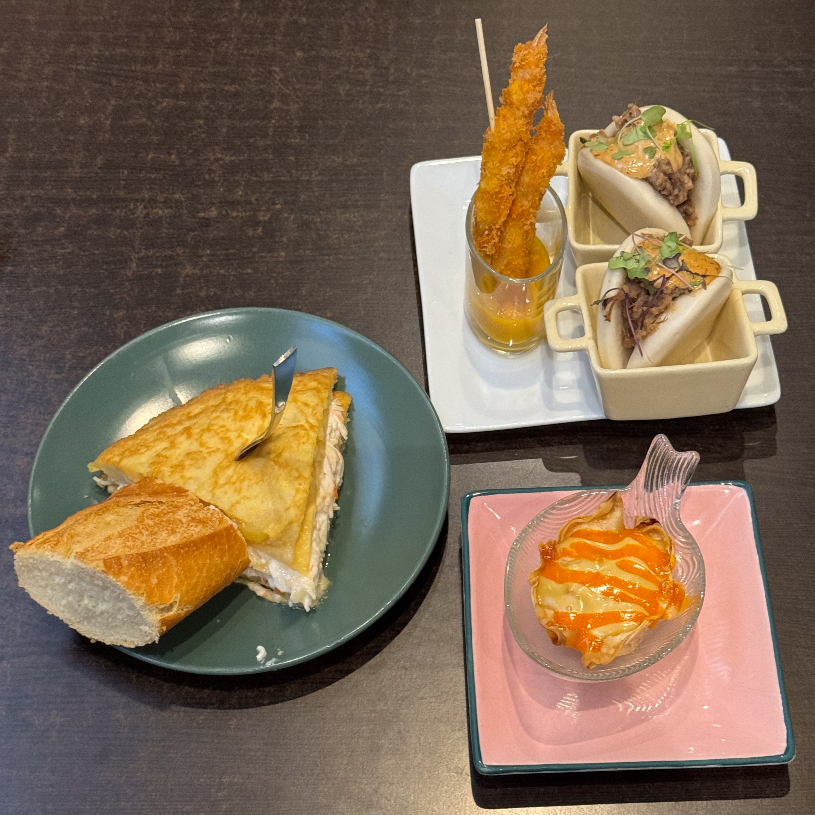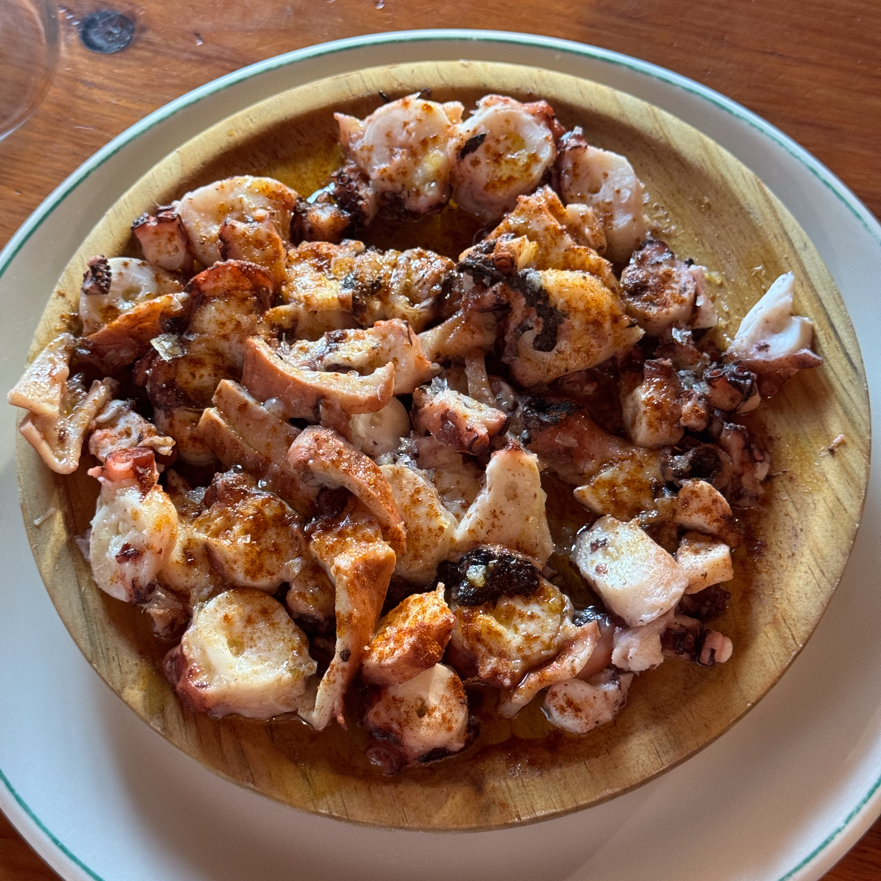 We besluiten van de gelegenheid gebruik te maken om te lunchen in Zumaia en belanden op goed geluk bij Labatra Taberna, een bar in een modern complex van meerdere verdiepingen, die duidelijk voornamelijk door locals wordt gefrequenteerd. Altijd een goed teken! We bestellen (o verrassing) pintxos en ik geniet vervolgens van een bord met werkelijk uitstekende inktvis. Heerlijk!