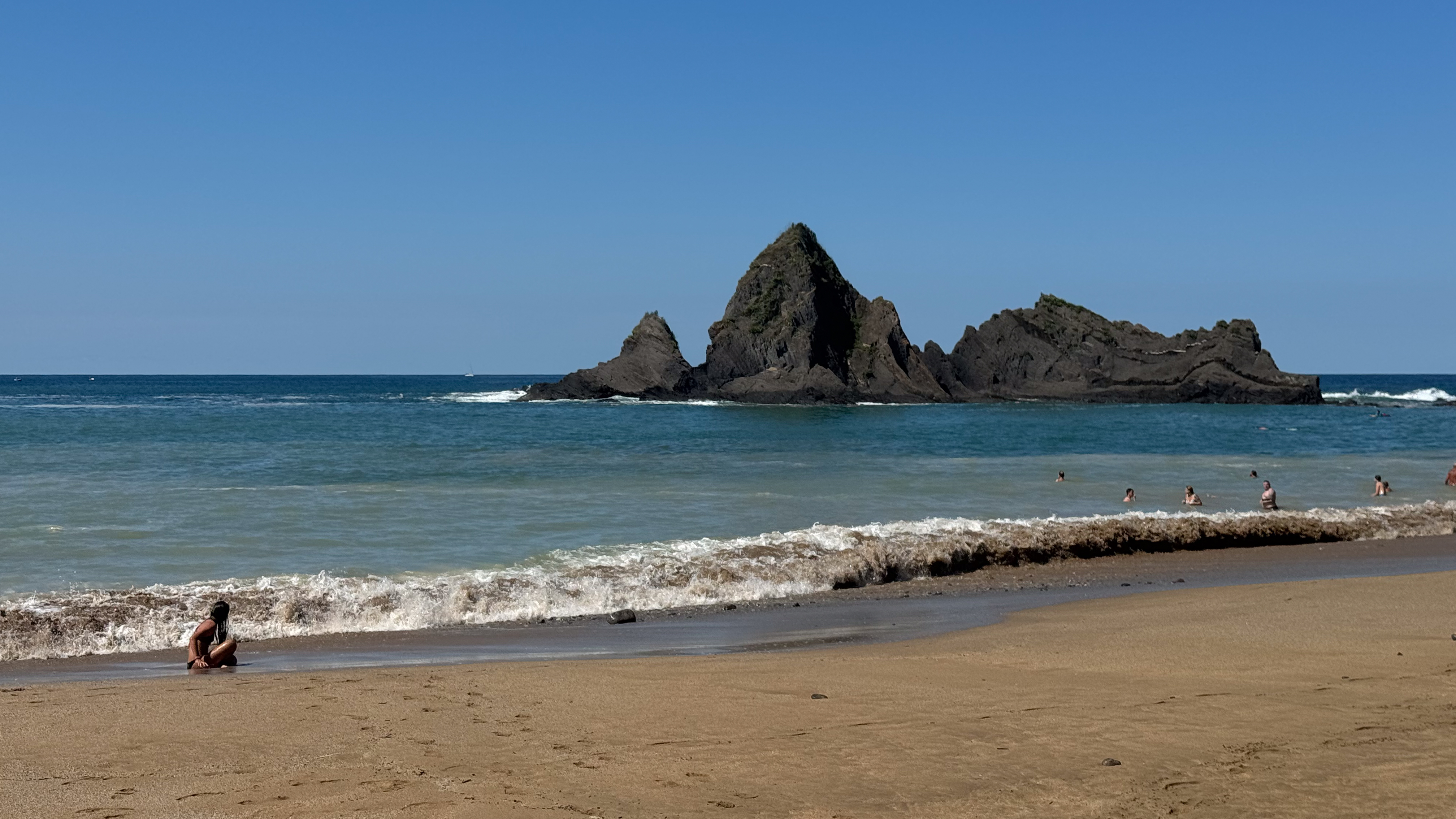 De temperaturen blijven stijgen, tijd dus om af te koelen in de frisse Atlantische Oceaan. We rijden met onze wagen naar het strand van Saturrarán. We parkeren op de parking vlak bij het strand, kleden ons om in de wagen en zoeken vervolgens een plekje voor onze handdoeken en strandspullen.