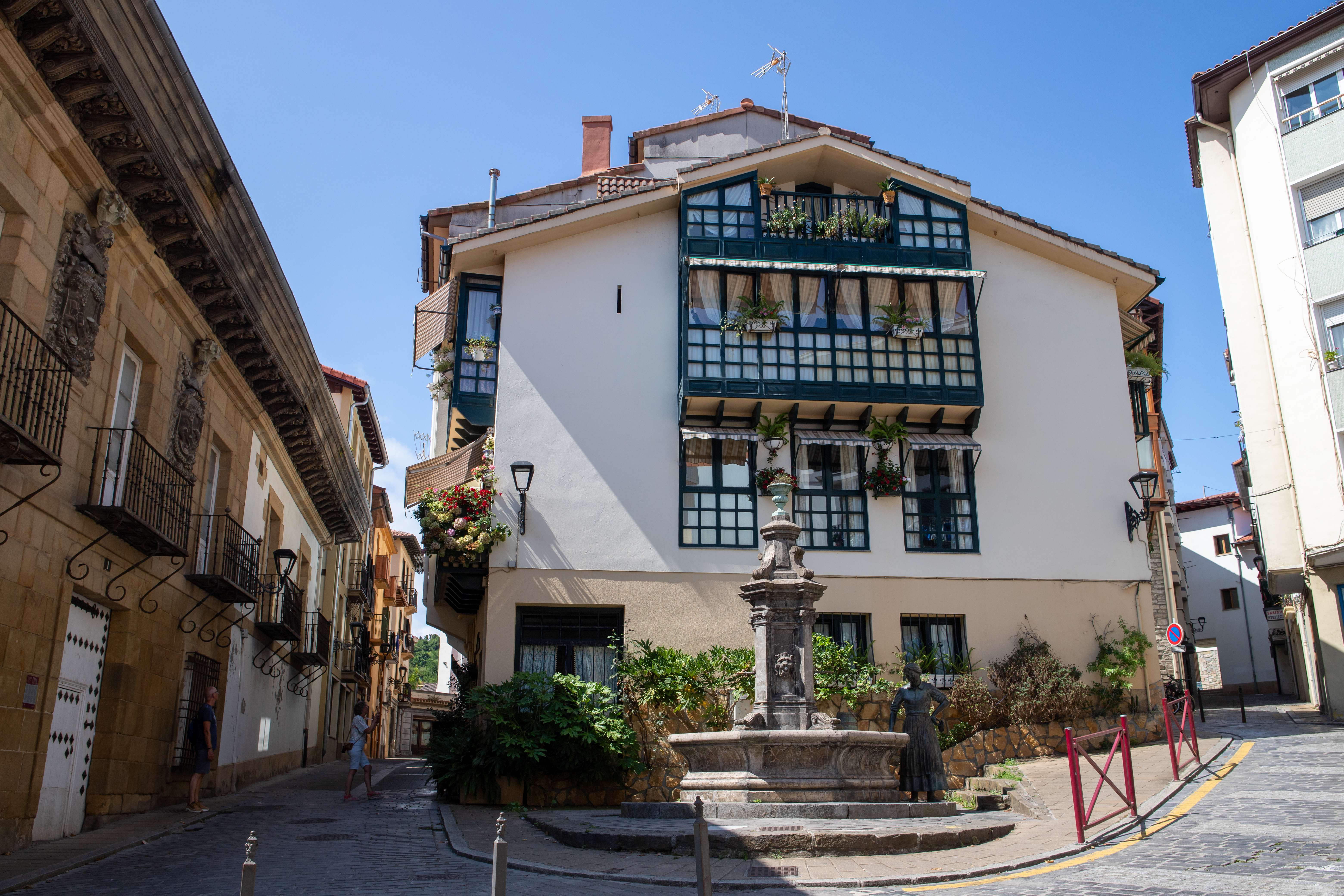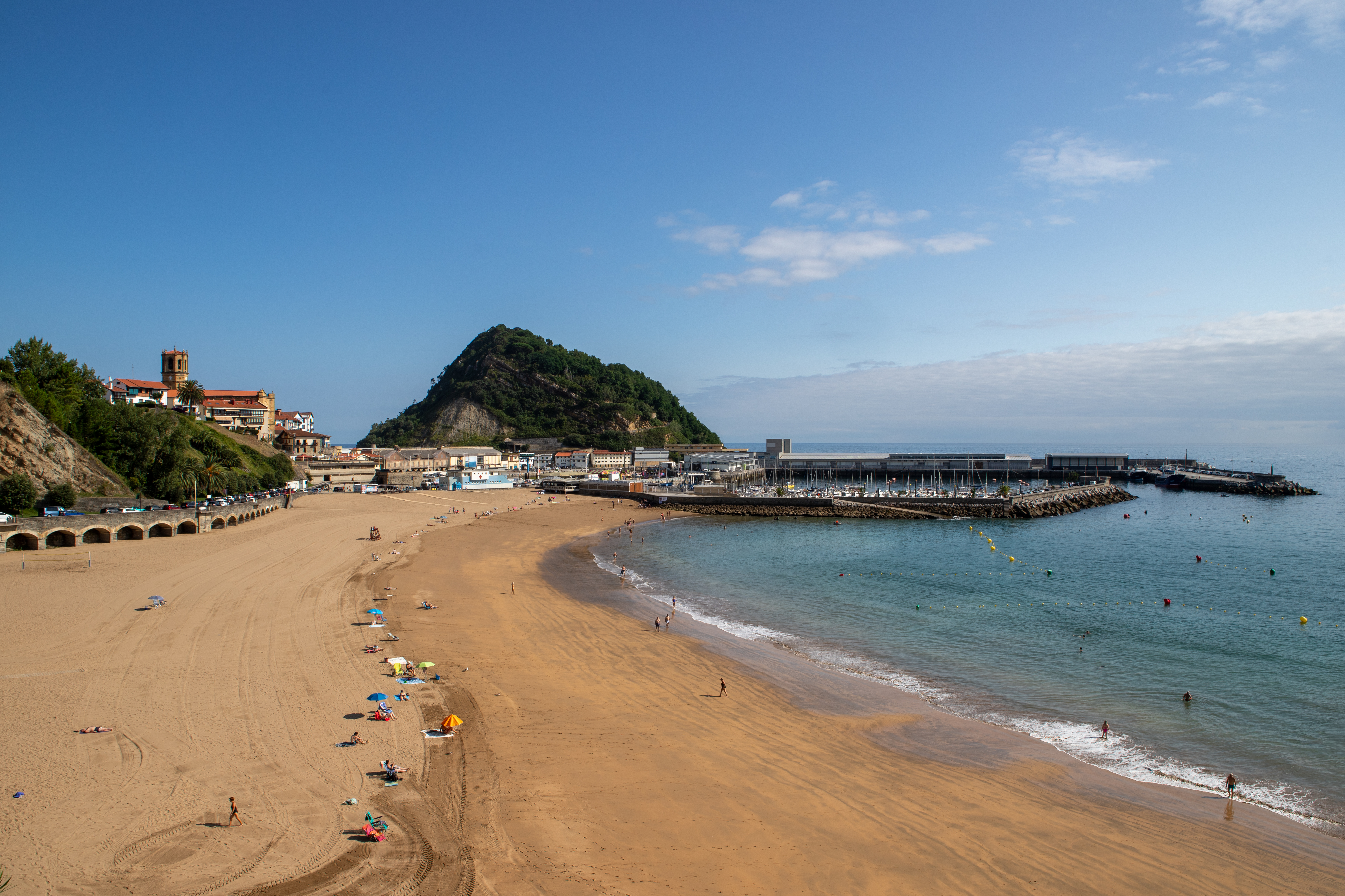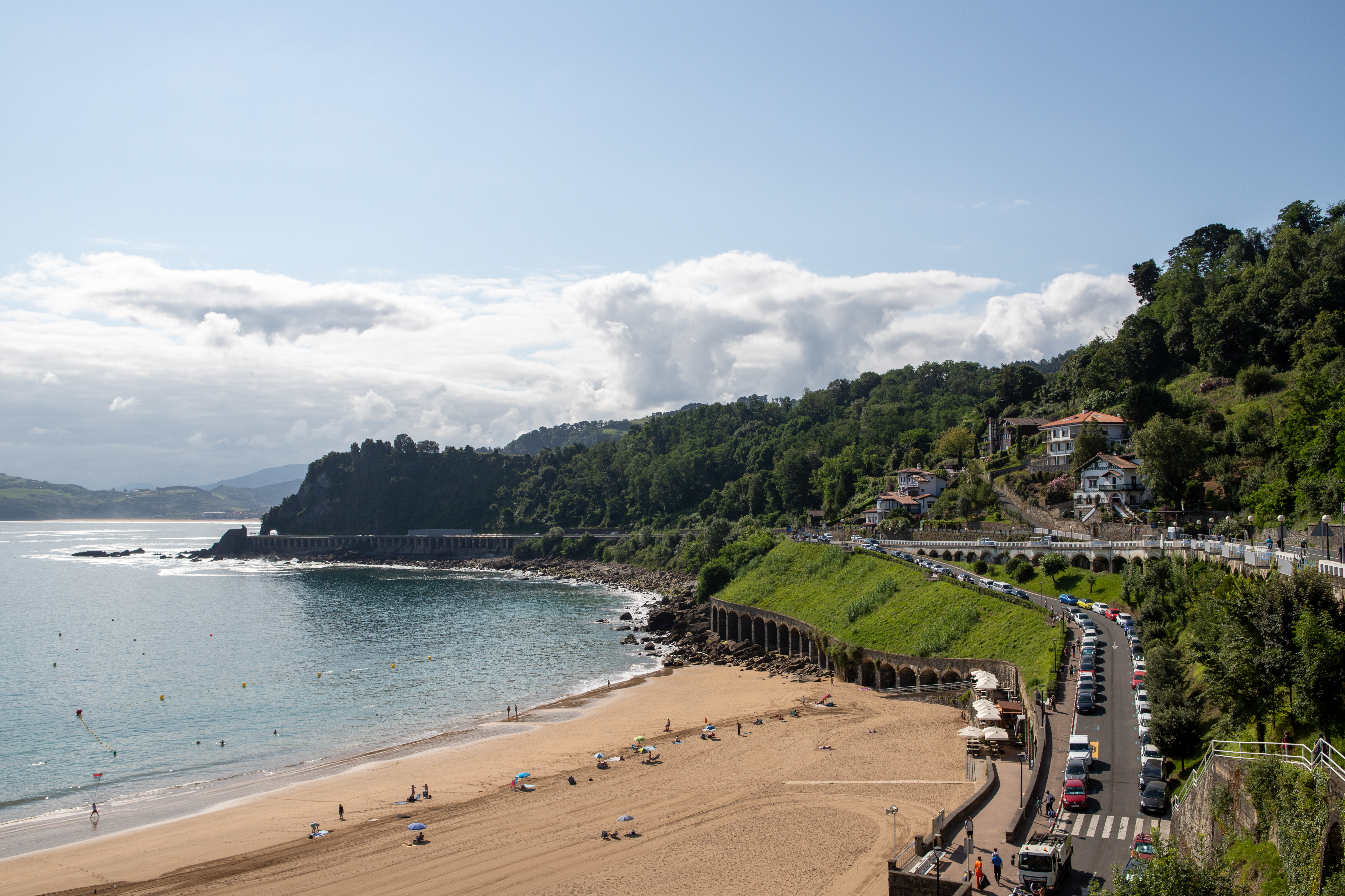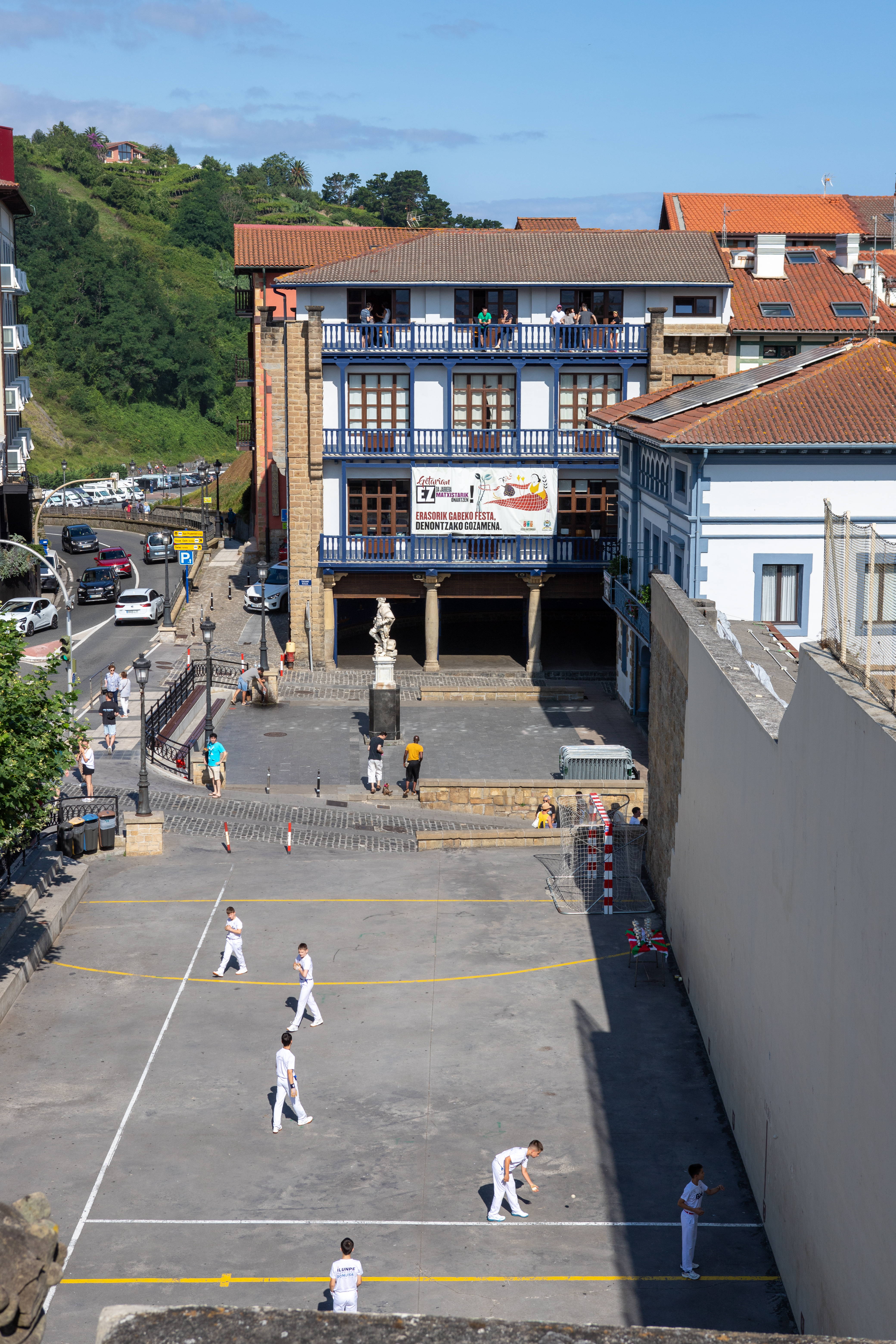 Onze eerste geplande stop is Zarautz, maar we vinden deze stad te groot en te druk en beslissen gewoon door te rijden. In Getaria stoppen we wel. We parkeren onze wagen langs de weg en bezoeken dit charmante dorp met vissershaven. We bewonderen de helaas gesloten 14de-eeuwse Iglesia de San Salvador langs de buitenkant, beklimmen het monument voor de gesneuvelden, zien voor het eerst een pelota spel in het echt en maken foto’s van de prachtige baai met het mooie brede zandstrand. Het dorp barst van de visrestaurants, maar het is jammer genoeg nog te vroeg om al te lunchen.