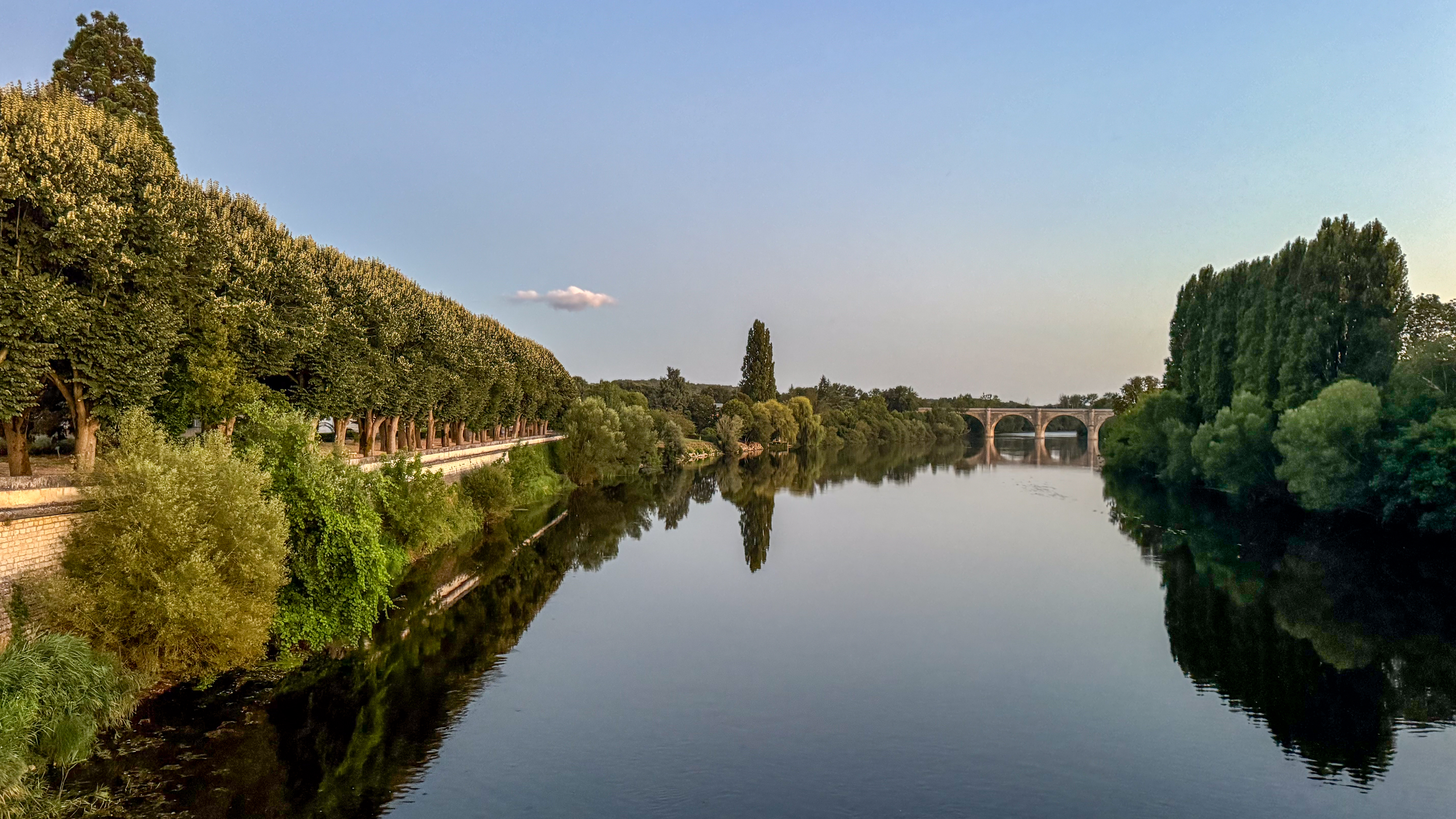 Om ons eten te laten verteren, maken we een kleine wandeling naar de brug waarover we Chauvigny zijn binnen gereden. We zetten onze wandeling verder langs het water en noteren dat er hier een mogelijkheid is om te kajakken.