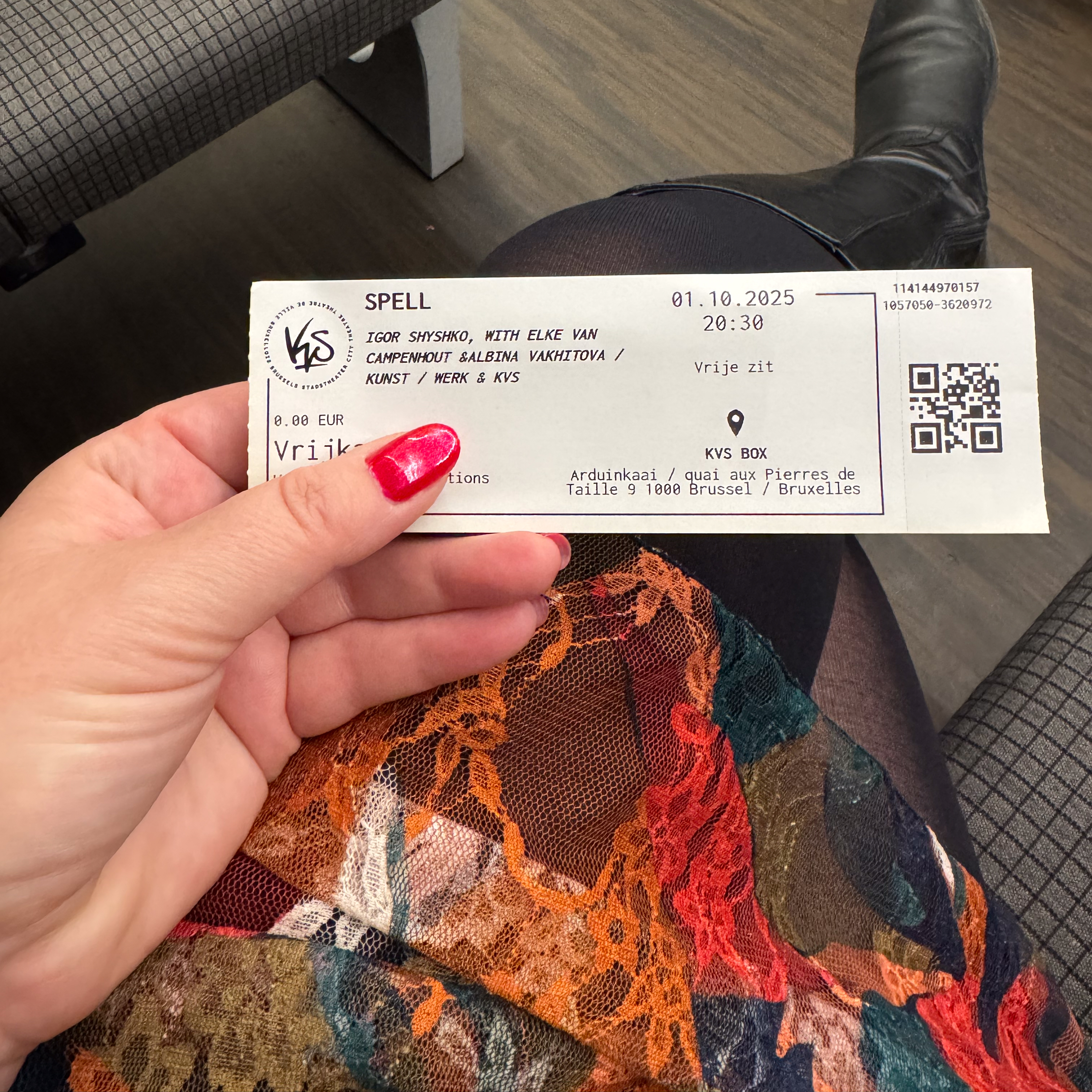 Van The Chairman wandelde ik naar de KVS, want ik had een vrijkaart voor de dansvoorstelling Spell van Igor Shyshko, met Elke Van Campenhout & Albina Vakhitova. Grappig: aan de ingang van de KVS box trof ik een collega met zijn vriend die naar dezelfde voorstelling gingen. Had ik meteen gezelschap.