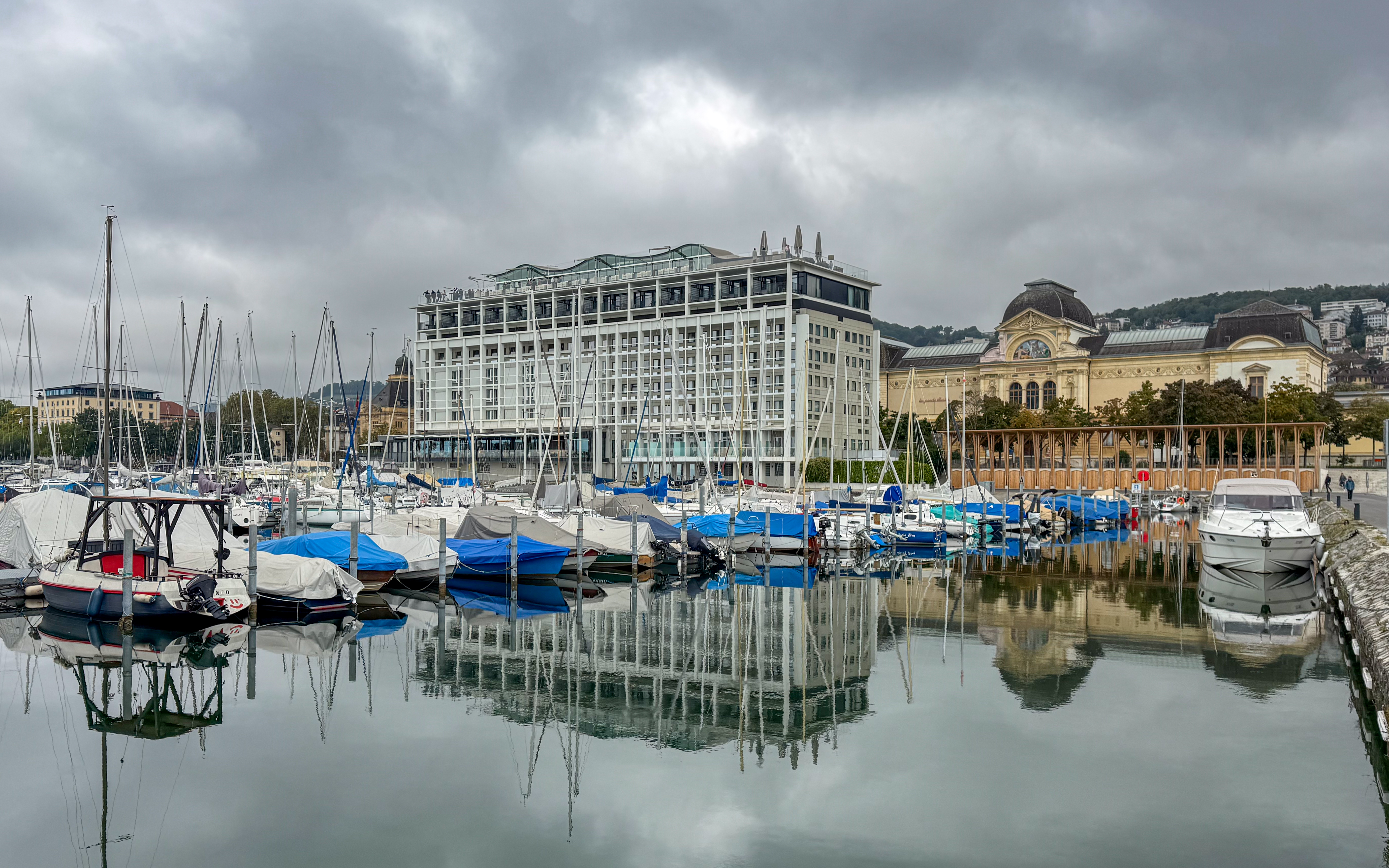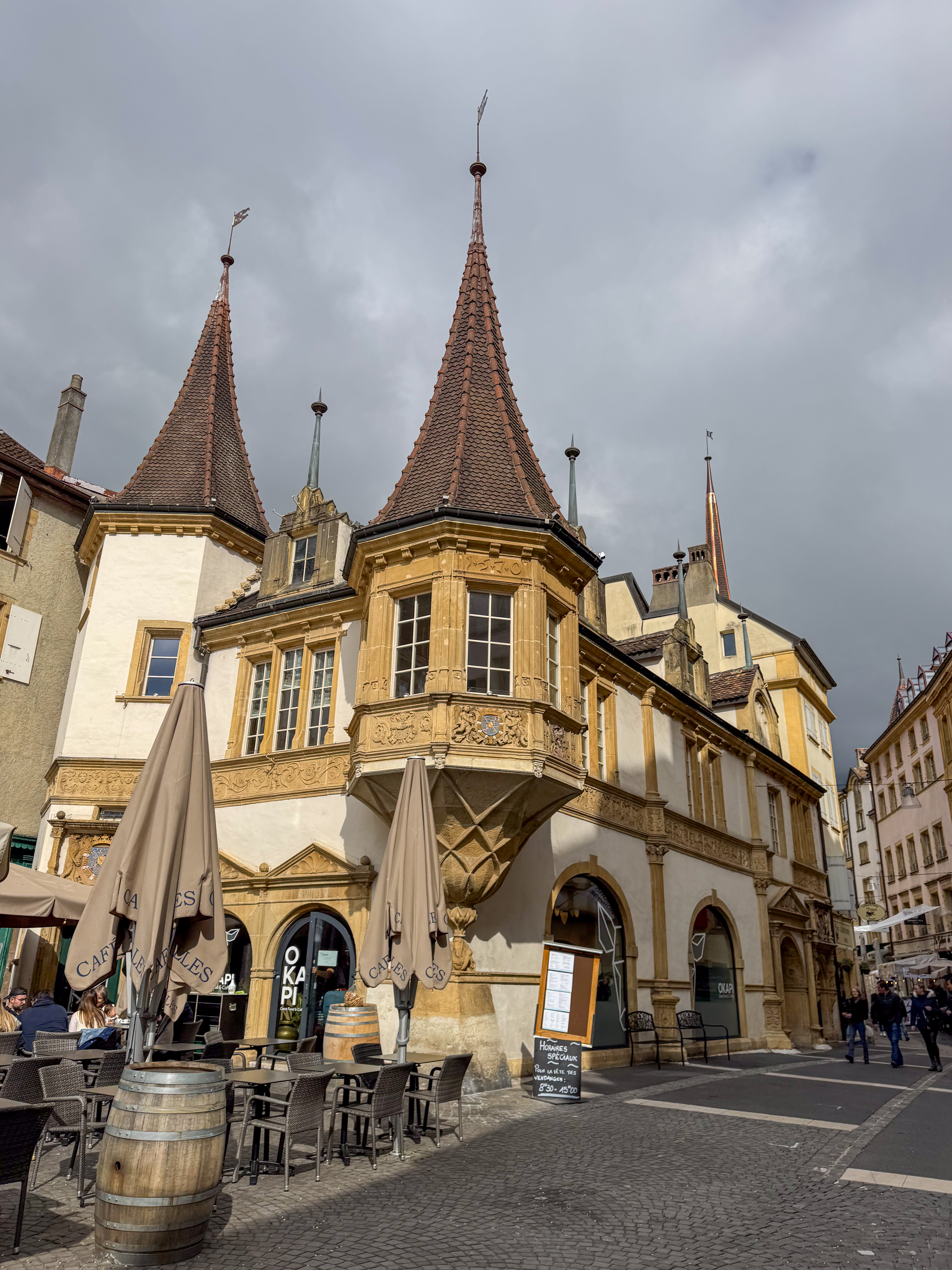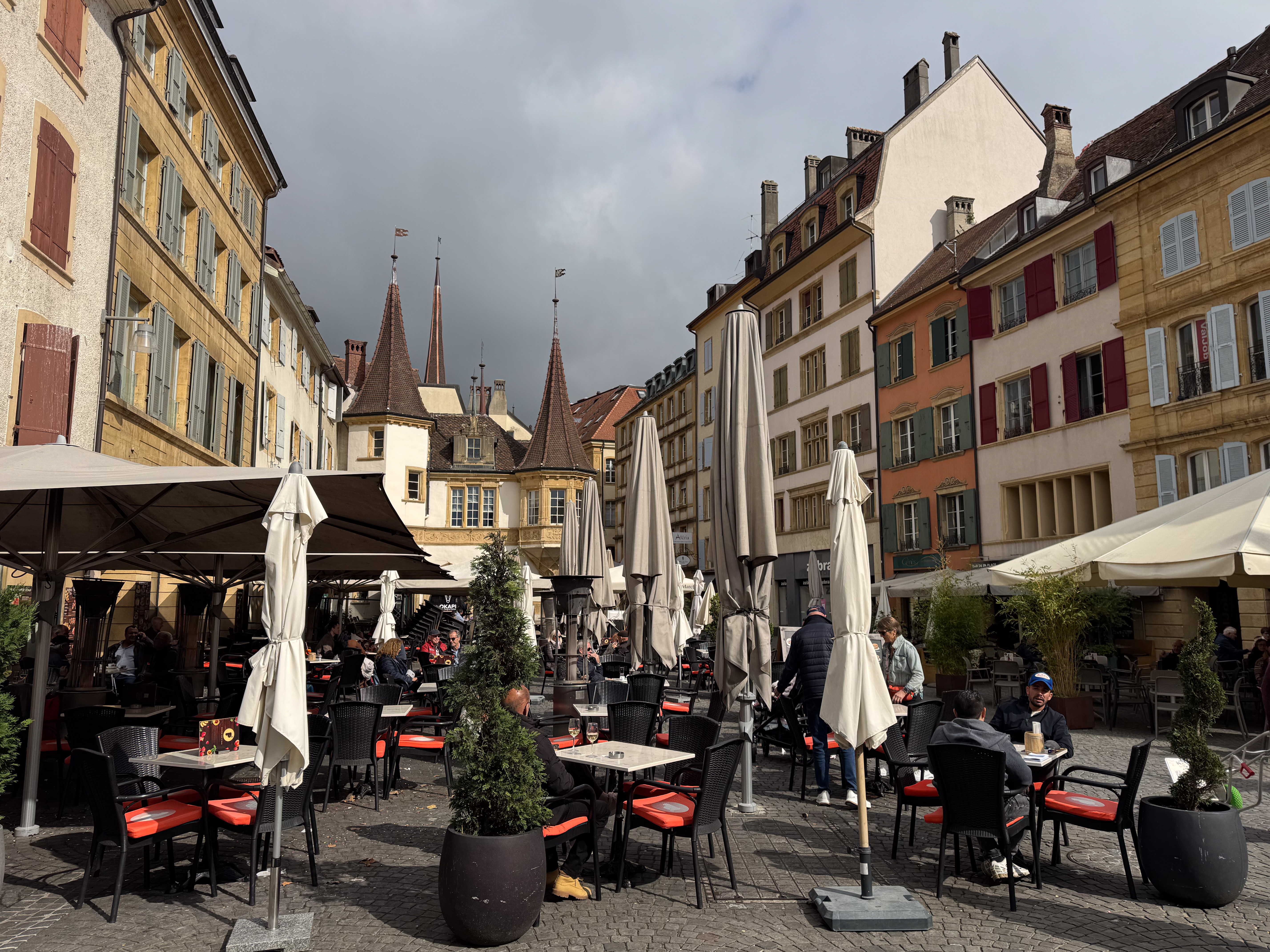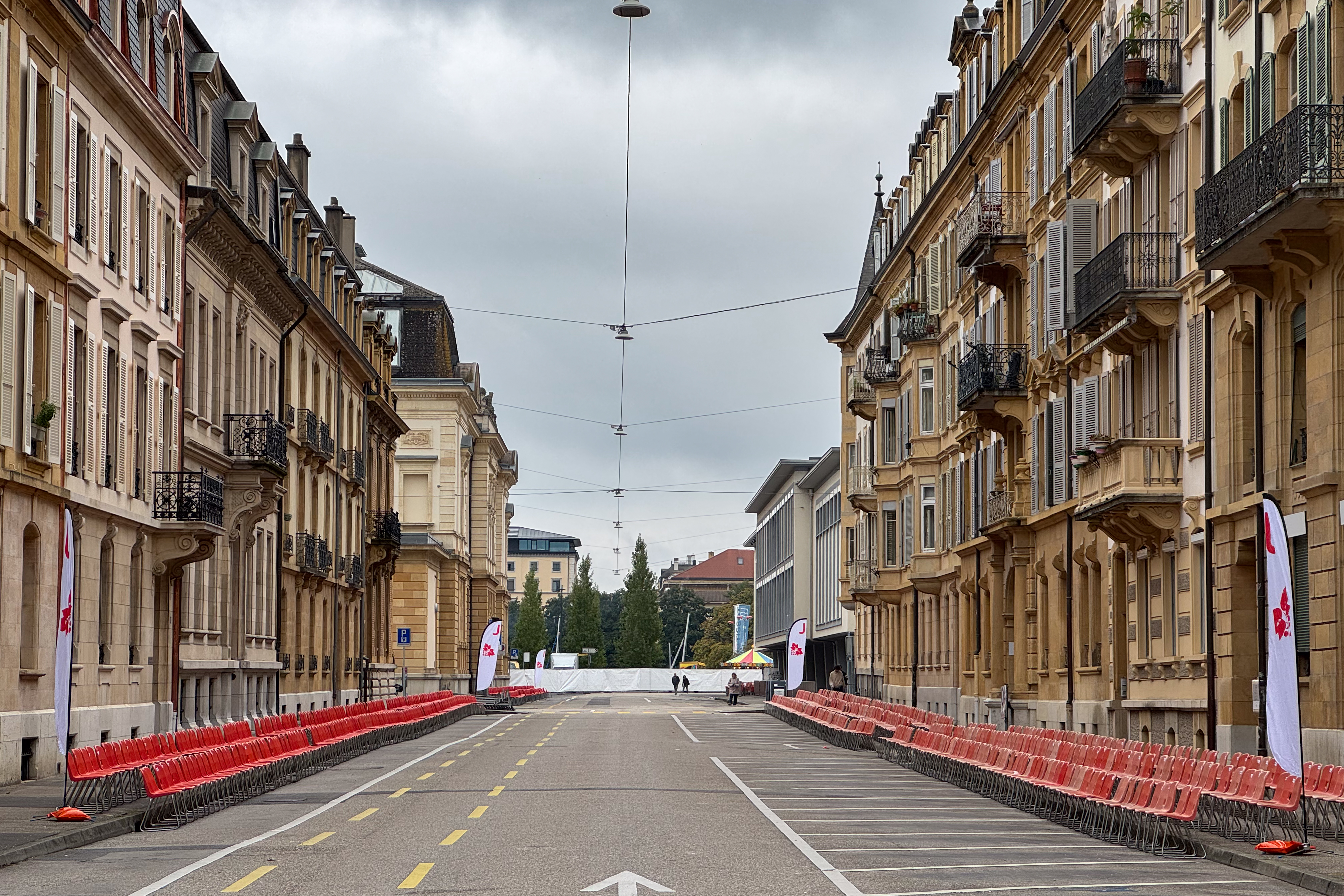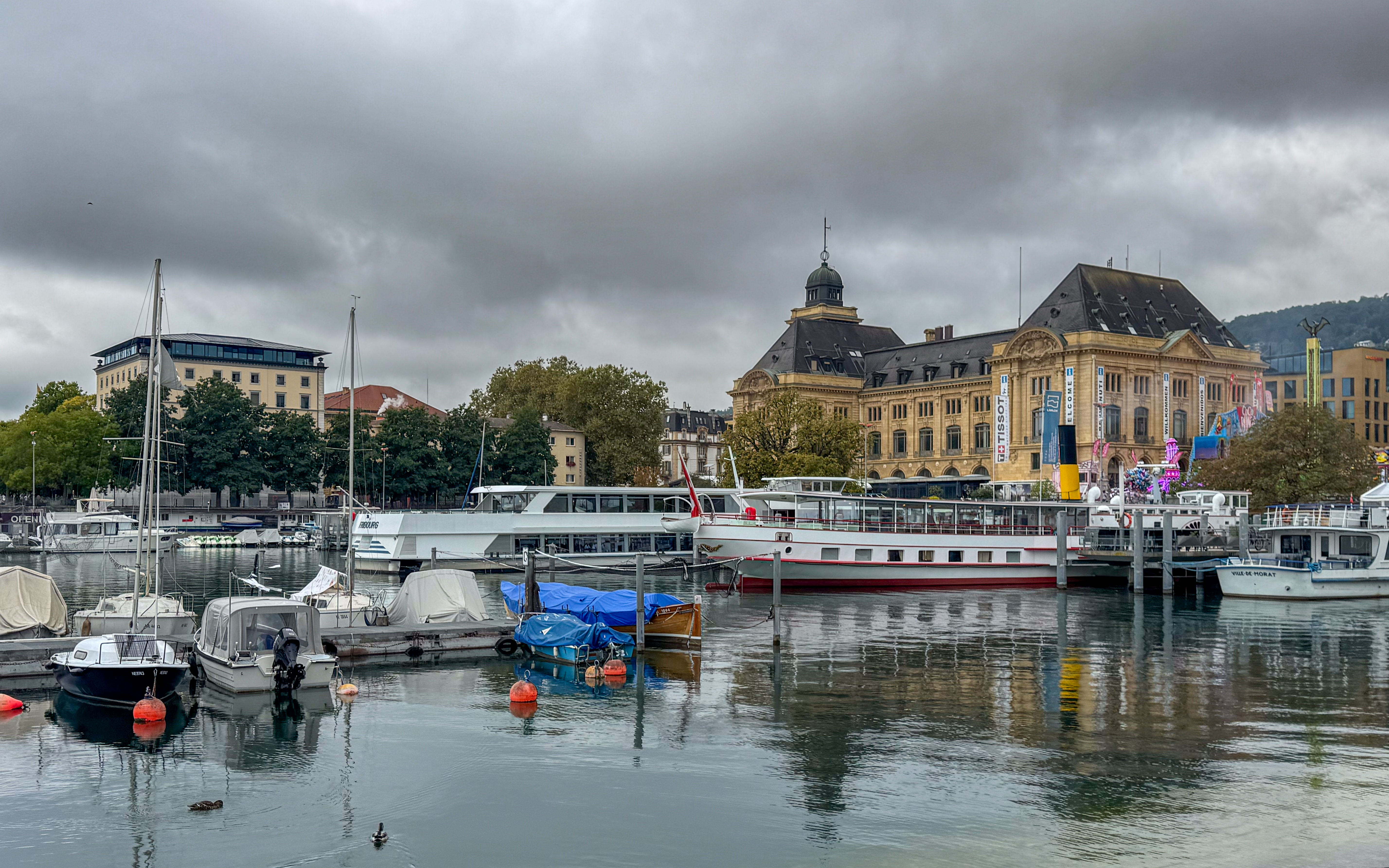 Rond een uur of elf komt de trein van de oud-collega aan in het station van Neuchâtel en trekken we samen naar het stadsgedeelte waar de feesten plaats vinden. Het is nog rustig in de stad, waar alles in gereedheid wordt gebracht voor het Grand Corso Fleuri. Fun fact: ik heb nog nooit in mijn leven een bloemencorso meegemaakt, maar raakte gefascineerd door het gegeven door het lezen van het boekje ‘Tiny en het bloemenfeest‘ (uit 1973, begot!), dat nog van mijn moeder moet zijn geweest. We kopen ons een polsbandje dat ons later toegang moet verschaffen tot het parcours van het bloemencorso en ik kijk ernaar uit om straks voor de eerste keer met bloemen versierde wagens aan mij voorbij te zien trekken.
