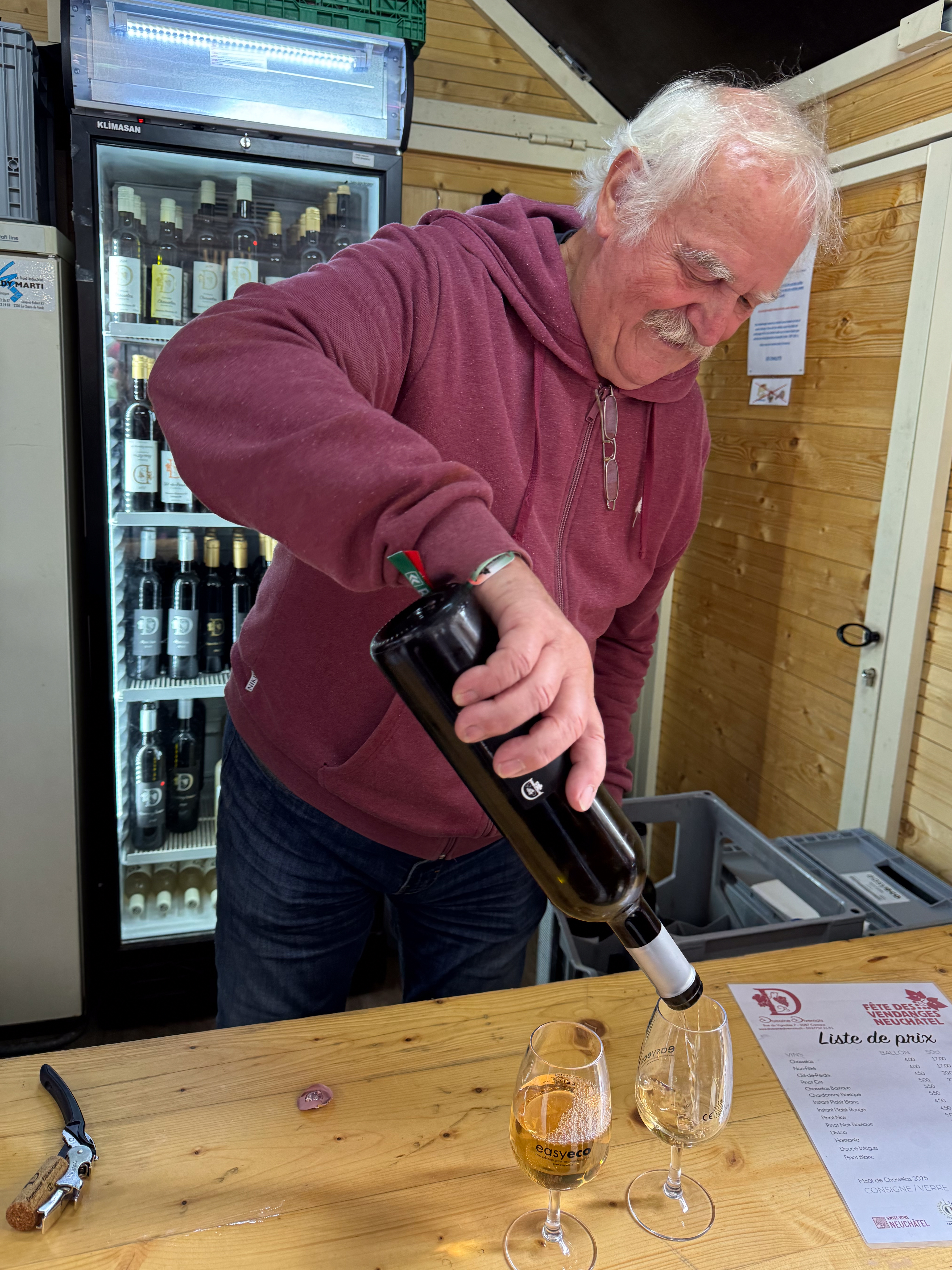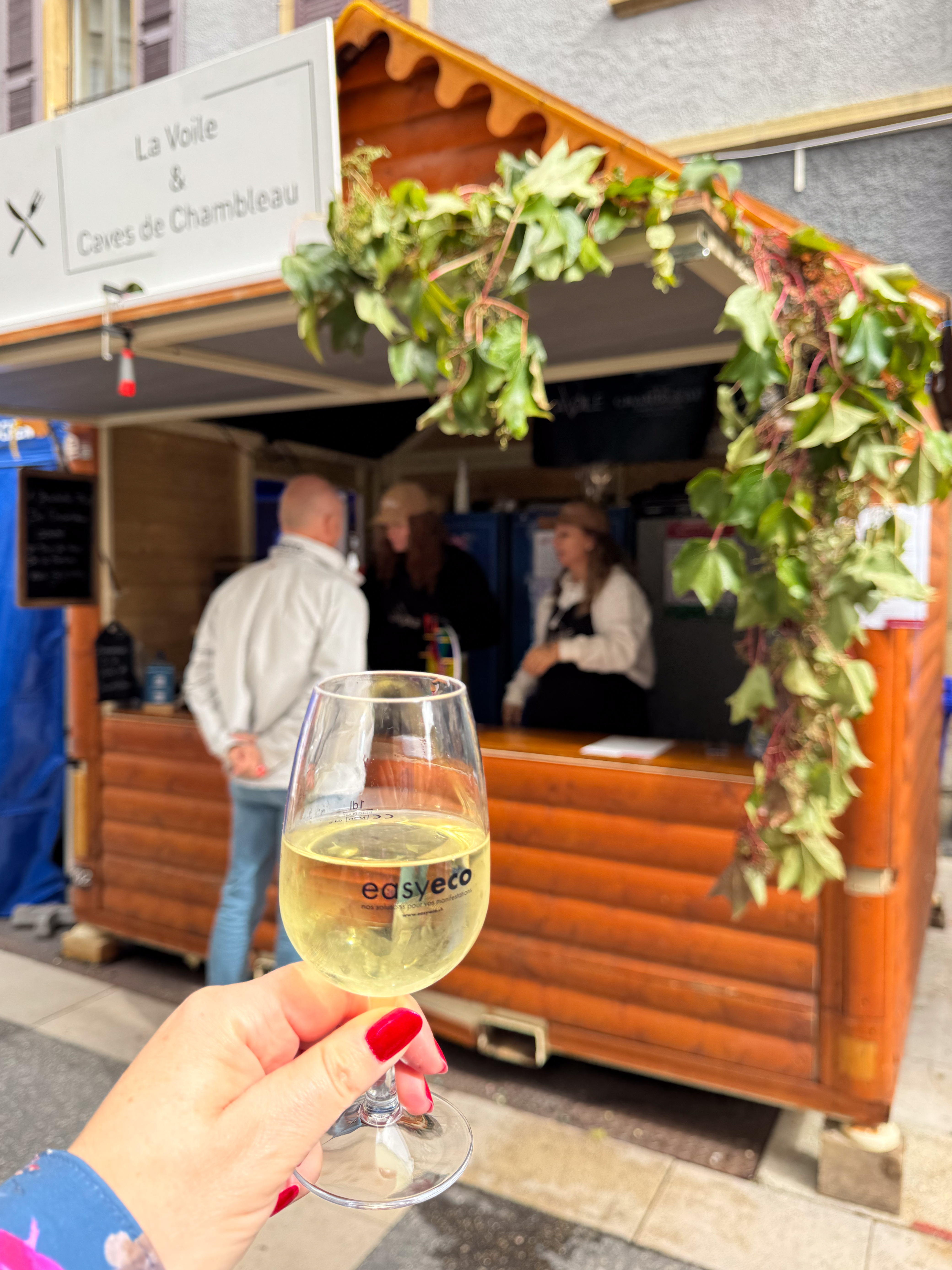 Rond het middaguur komt er eindelijk wat meer leven in de stad en we begeven ons naar de straat met de kraampjes van de wijnbouwers uit de regio. We proeven ettelijke wijntjes en leggen een bodempjes met uitstekende hamburgers met lokaal gekweekt vlees en lokaal geproduceerde kaas. We komen zelfs een groepje Waalse landgenoten tegen die uit volle borst een drinklied zingen voor een lokale journalist.