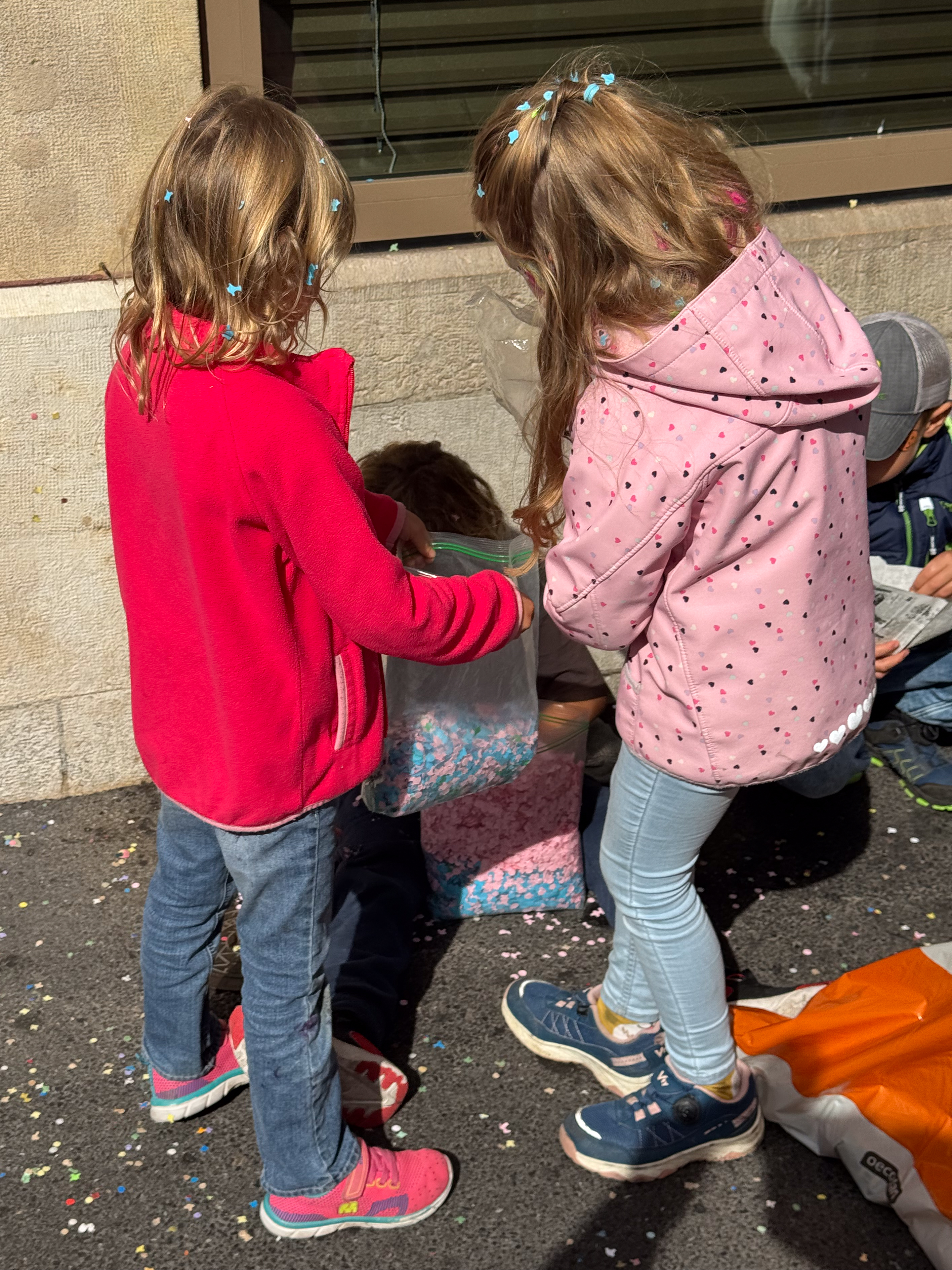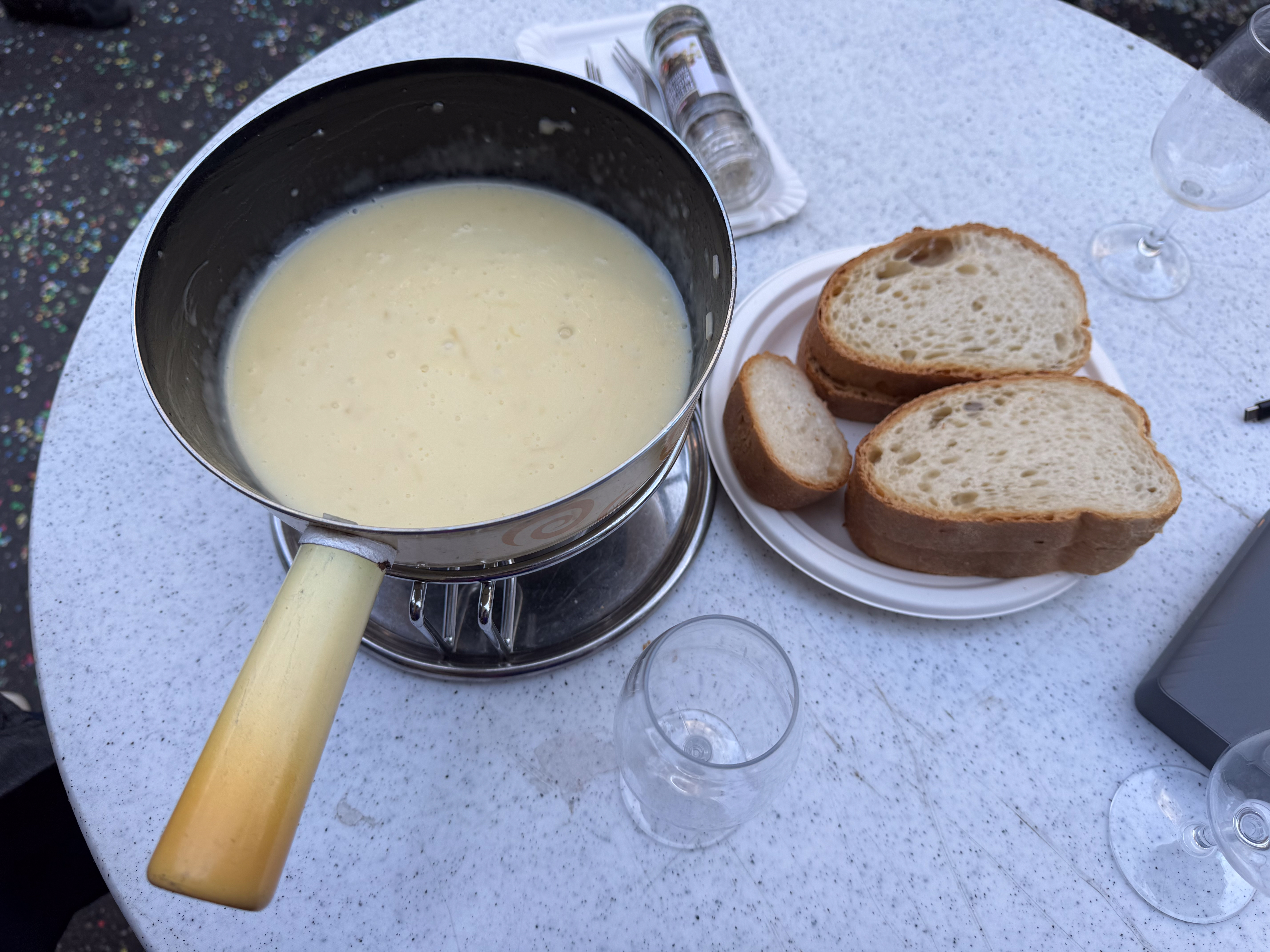 Na een kleine anderhalf uur is de stoet voorbij en trekken we terug naar het straatje met de wijnkraampjes. We delen zijn ons drieën een heerlijke kaasfondue met een flesje roséwijn daarbij. We zijn op dat moment al stevig boven ons theewater en de rest van de avond is eerder flou in mijn hoofd. Ik vermoed dat die laatste fles rode wijn niet bepaald een goed idee was. 😉