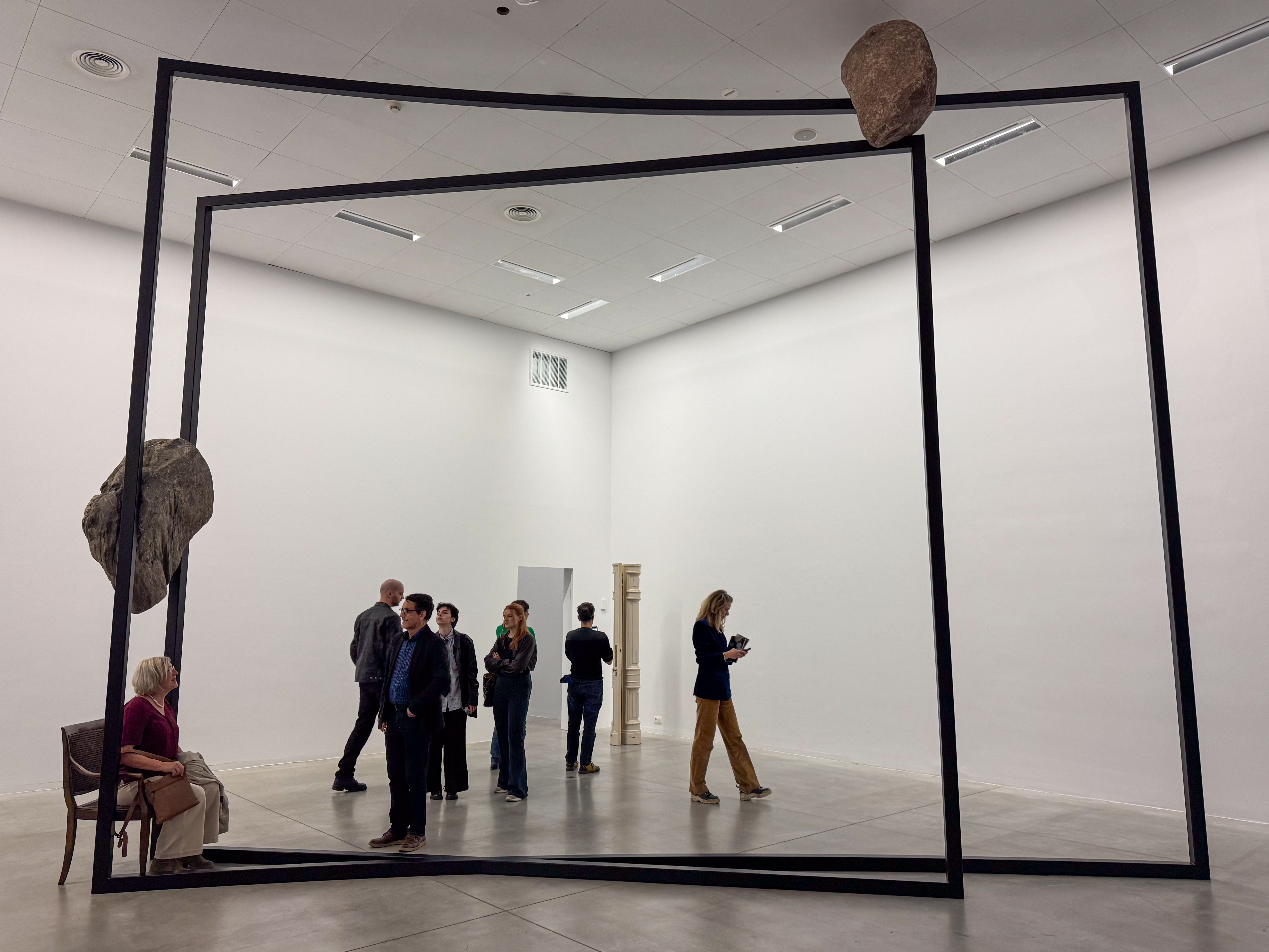 Elke ruimte van de tentoonstelling van Alicja Kwade bevatte meerdere werken die mij aanspraken, maar graag een bijzondere vermelding voor deze variatie op de slinger van Foucault en het werk dat letterlijk illustreert wat het betekent om in cirkels rond te draaien.