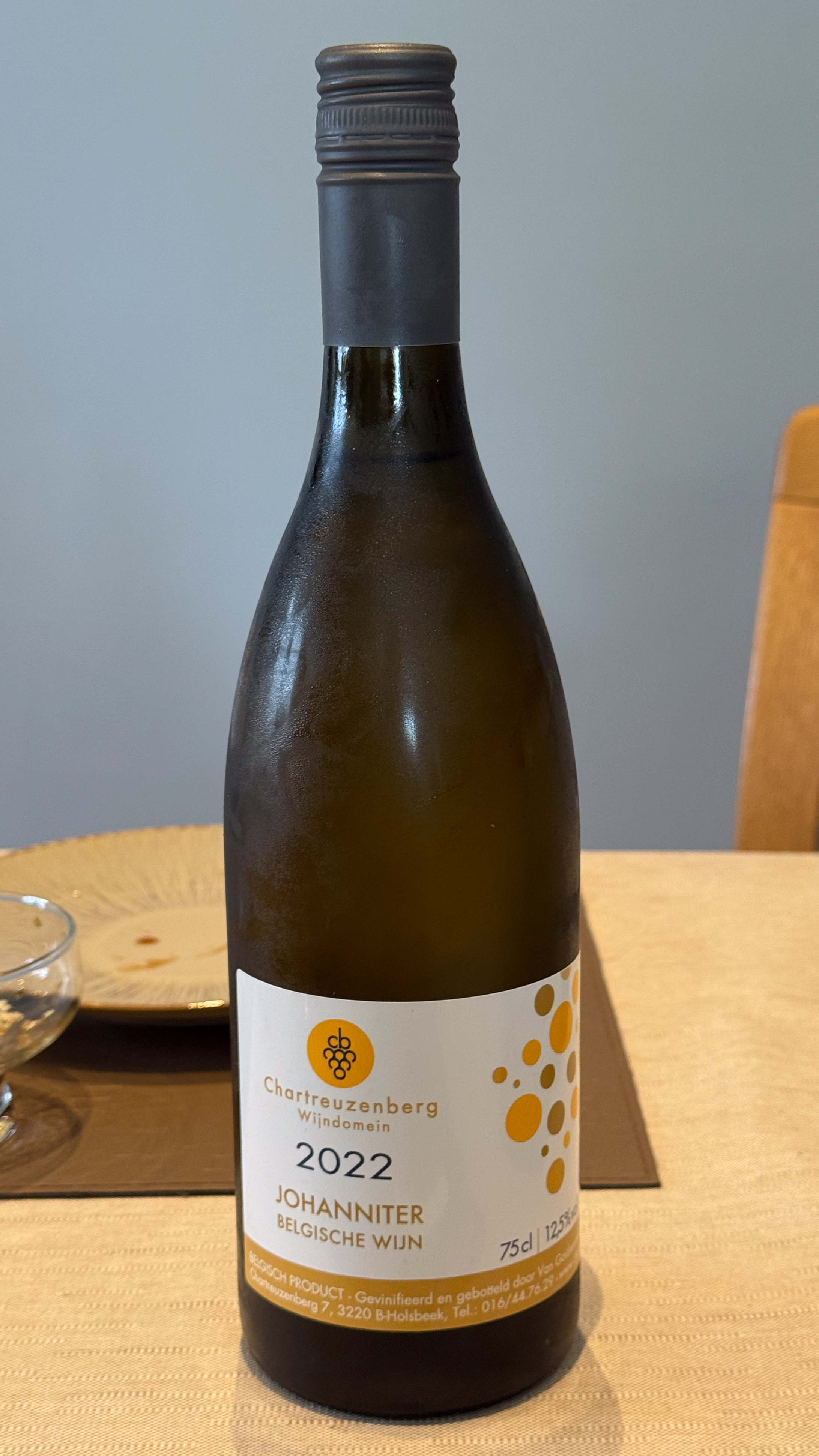 We genoten van een lekker flesje Johannitter, Belgische witte wijn van het wijndomein Chartreuzenberg.