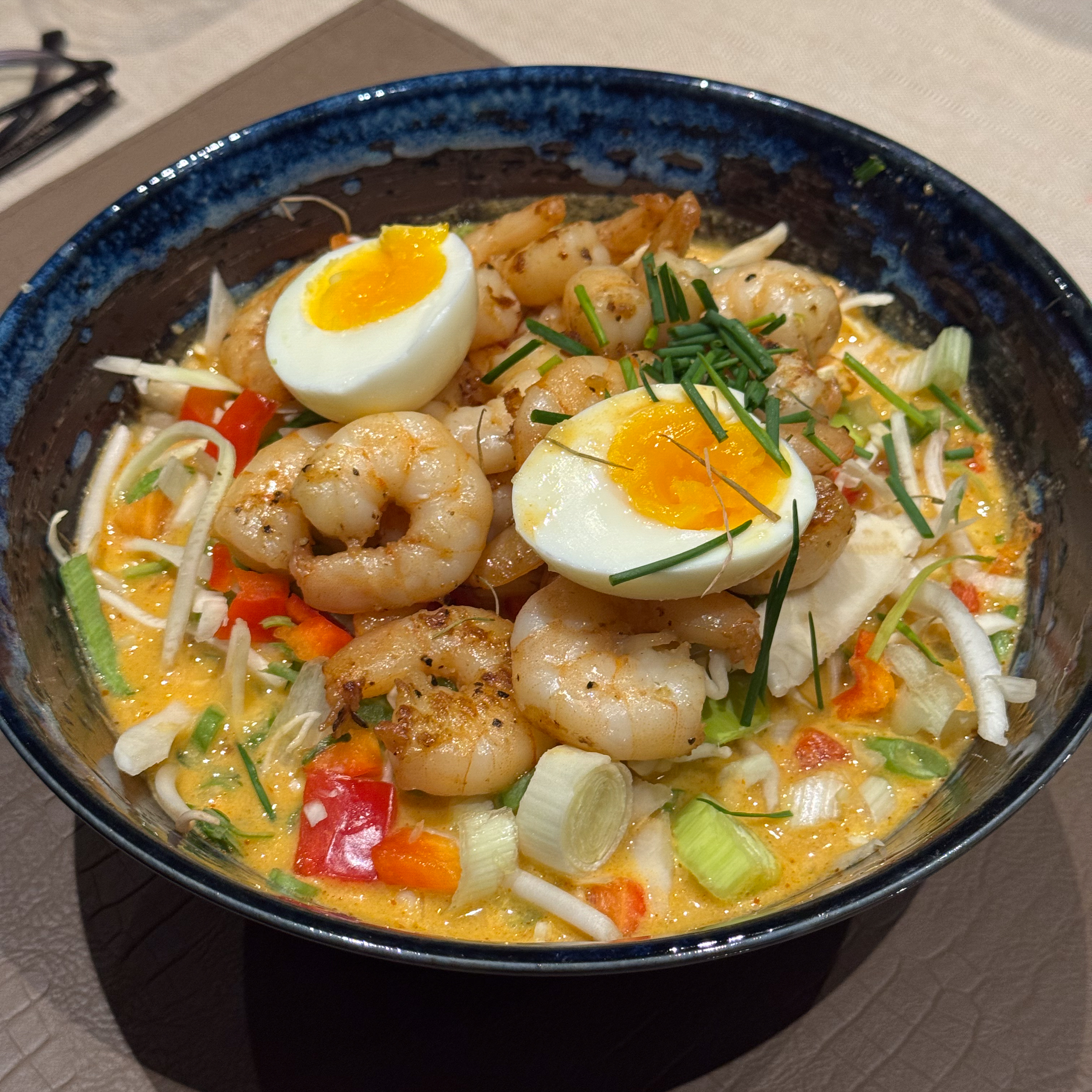 Voor het hoofdgerecht had onze vriendin laksa gemaakt, één van mijn favoriete maaltijdsoepen. Amai, dat smaakte!