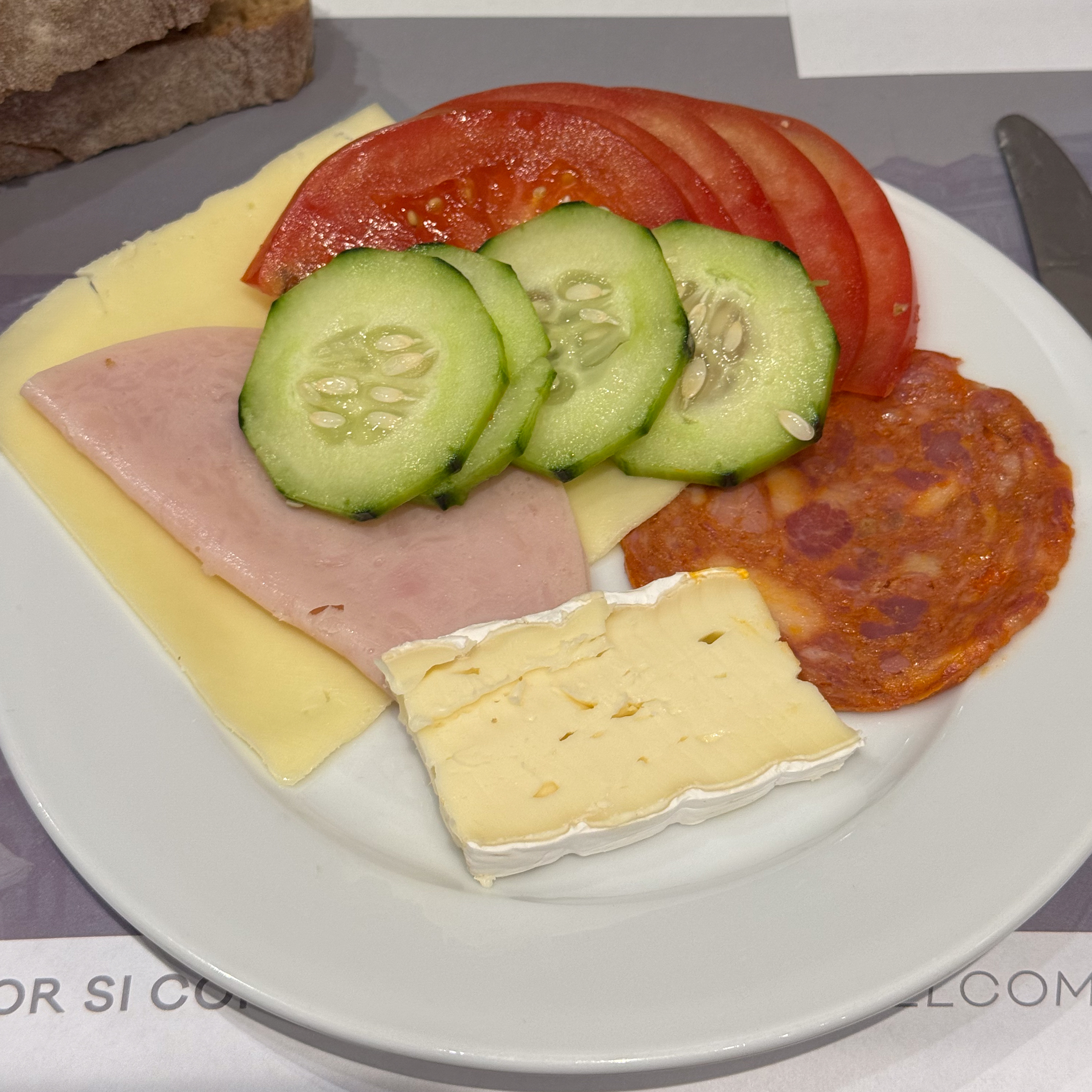 Deze ochtend moeten we niet aanschuiven om een plekje aan het ontbijtbuffet te bemachtigen en we kunnen zelfs met vier aan één tafel eten. Succes!