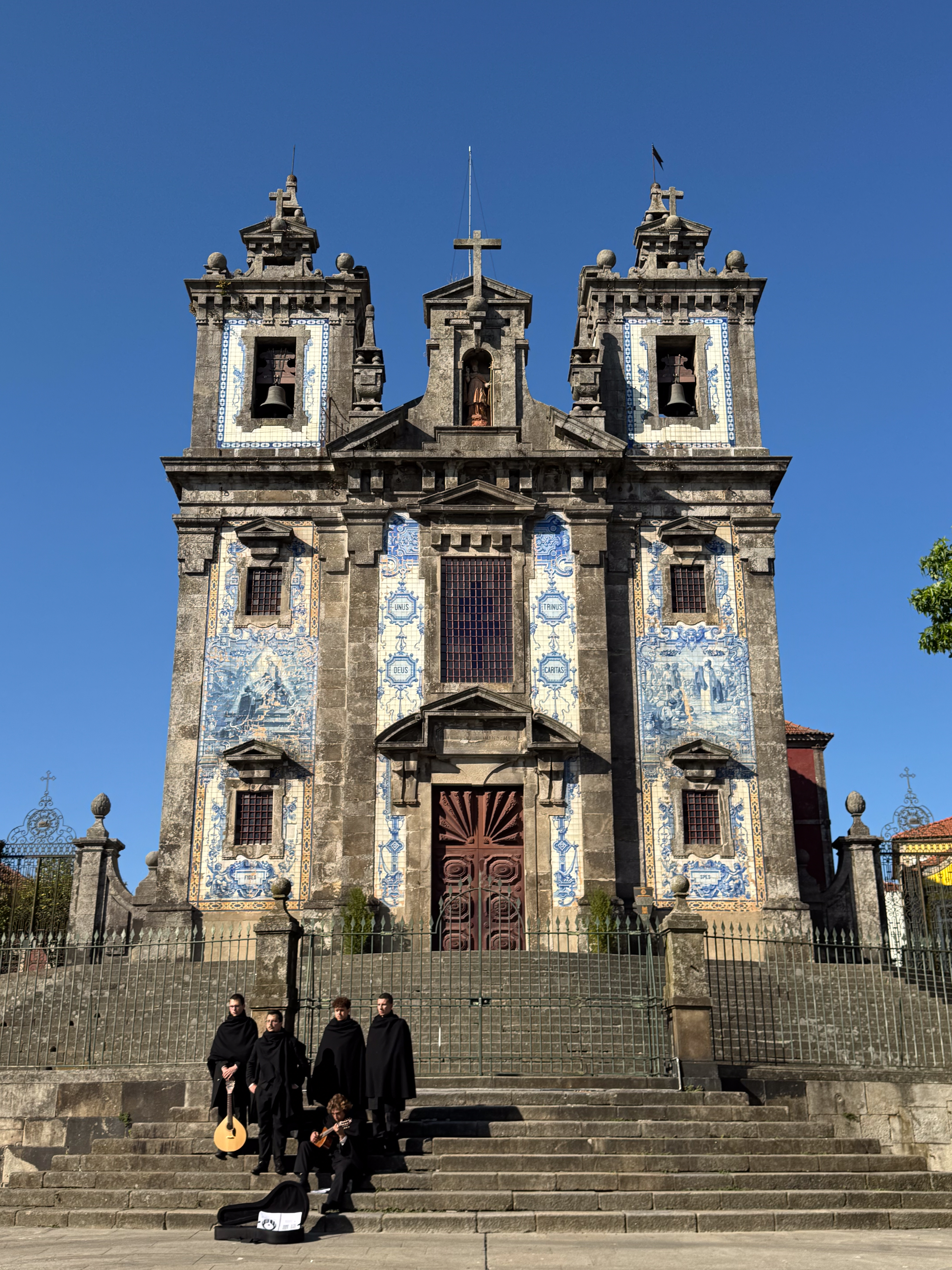 We frissen ons wat op en trekken om zes uur de stad in. We stoten meteen al op een groep van vier in het zwart uitgedoste mannen die op de trappen van de Santo Ildefonso kerk fado brengen. We slenteren vervolgens wat rond op een marktje dat zich op het plein voor ons hotel bevindt. De kraampjes verkopen veel handwerk en lokale producten. De ouders van mijn vriend kopen meteen al een bolletje kaas voor de buurvrouw die op hun katten past. Kunnen we dat ook al van de lijst schrappen.