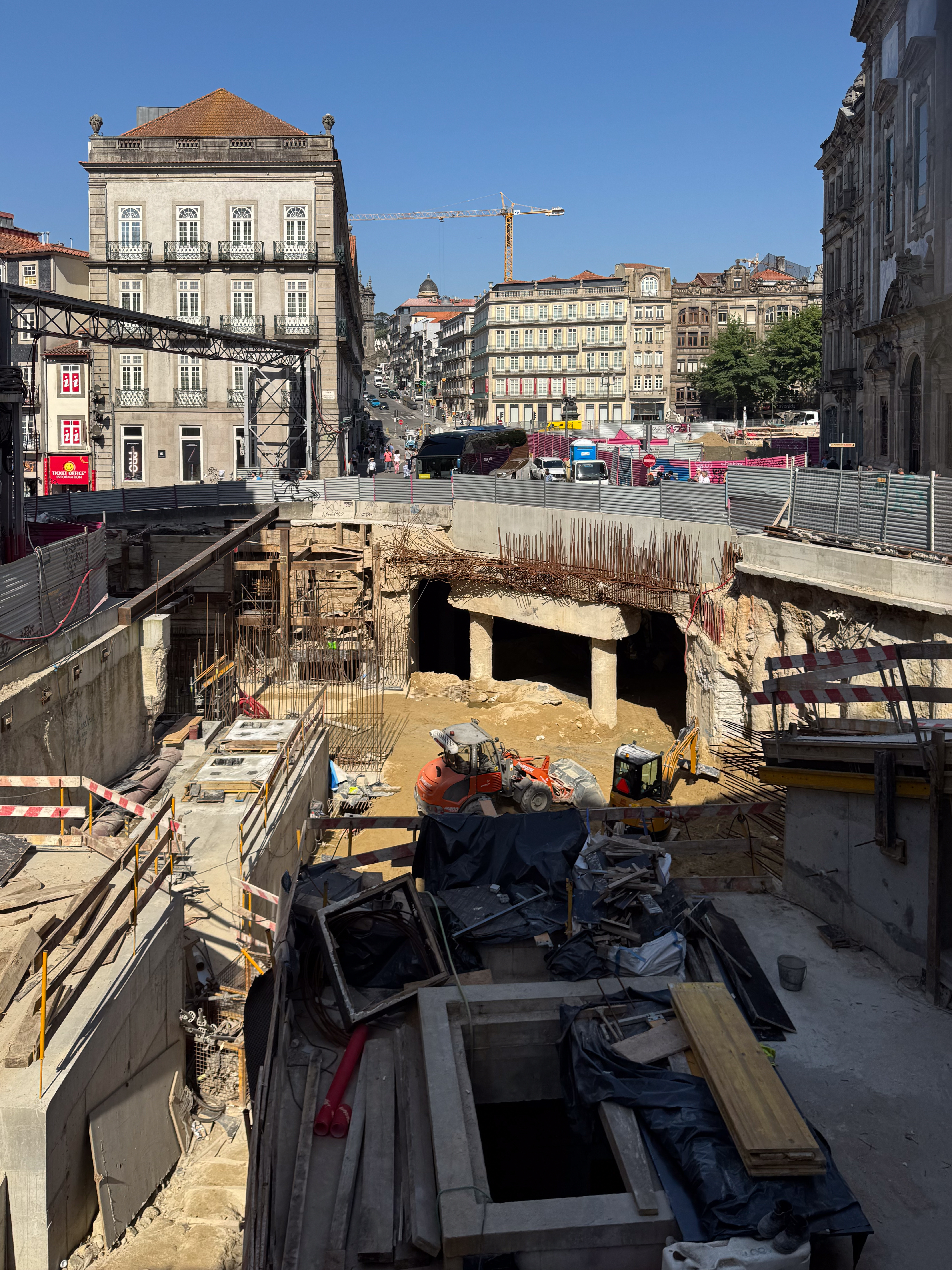 Spijtig genoeg is een groot gedeelte van Porto getransformeerd in een enorme bouwwerf voor de nieuwe, roze metrolijn (Linha Rosa). Gigantische bouwputten en grote machines laten littekens na in het stadsweefsel. Uiteraard kan ik alleen maar toejuichen dat Porto volop de kaart van het openbaar vervoer trekt. Alleen loopt deze nieuwe metrolijn, zoals zoveel openbare werken van dit kaliber, serieuze vertraging op. Benieuwd wanneer de metrolijn effectief zal open gaan.