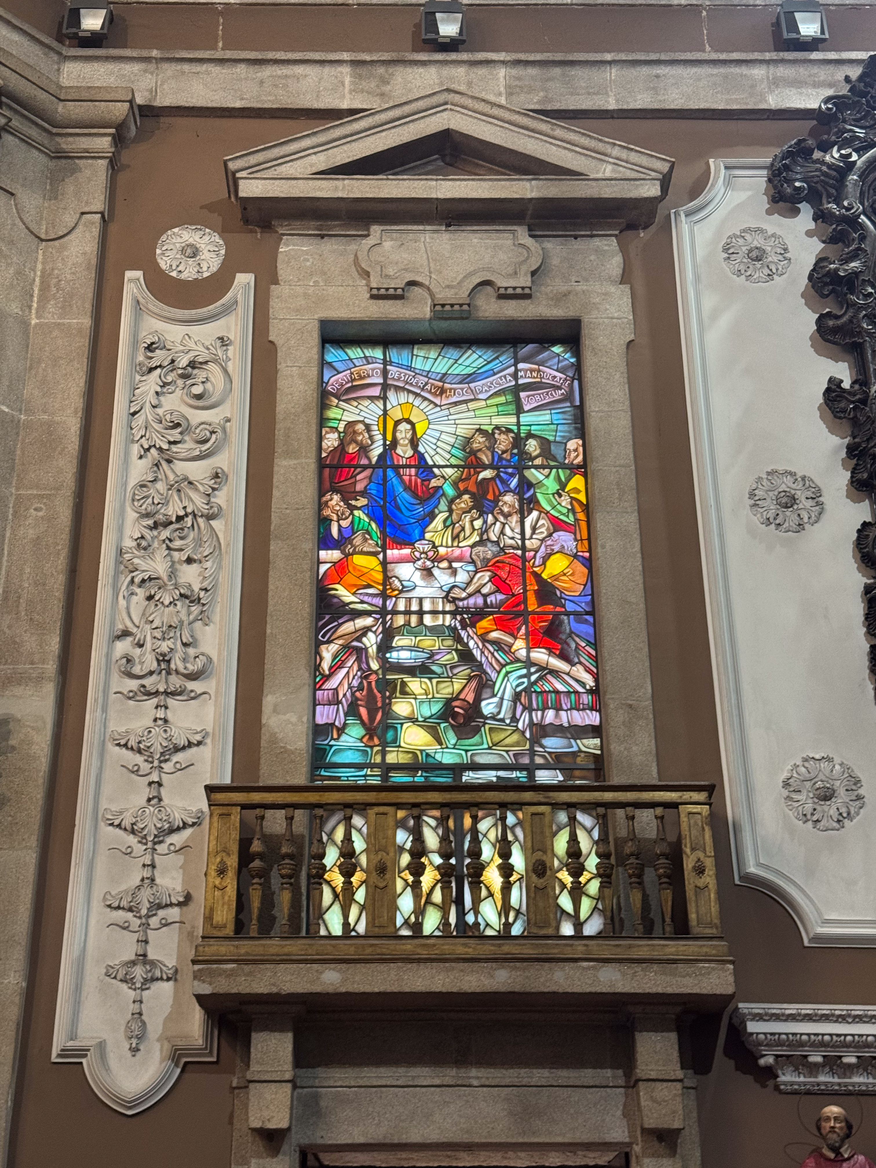 Vandaag starten we de dag met een bezoek aan de Santo Ildefonso kerk vlakbij ons hotel. De vorige dagen was de kerk altijd gesloten toen wij er passeerden, maar nu is deze open. Opvallend aan deze kerk is het grote glasraam in de voorgevel met daarin een groot blauw bisschoppelijk kruis.
