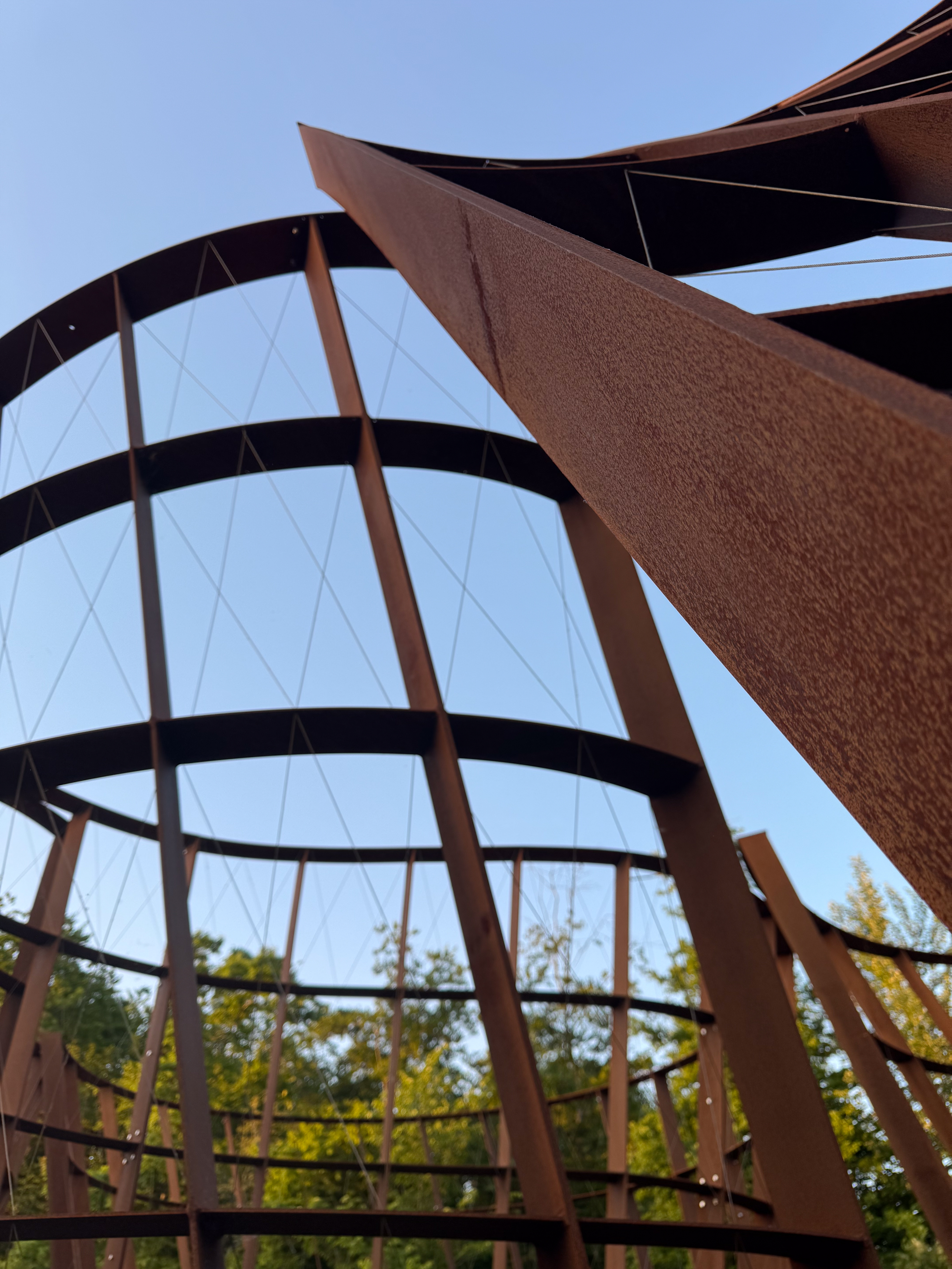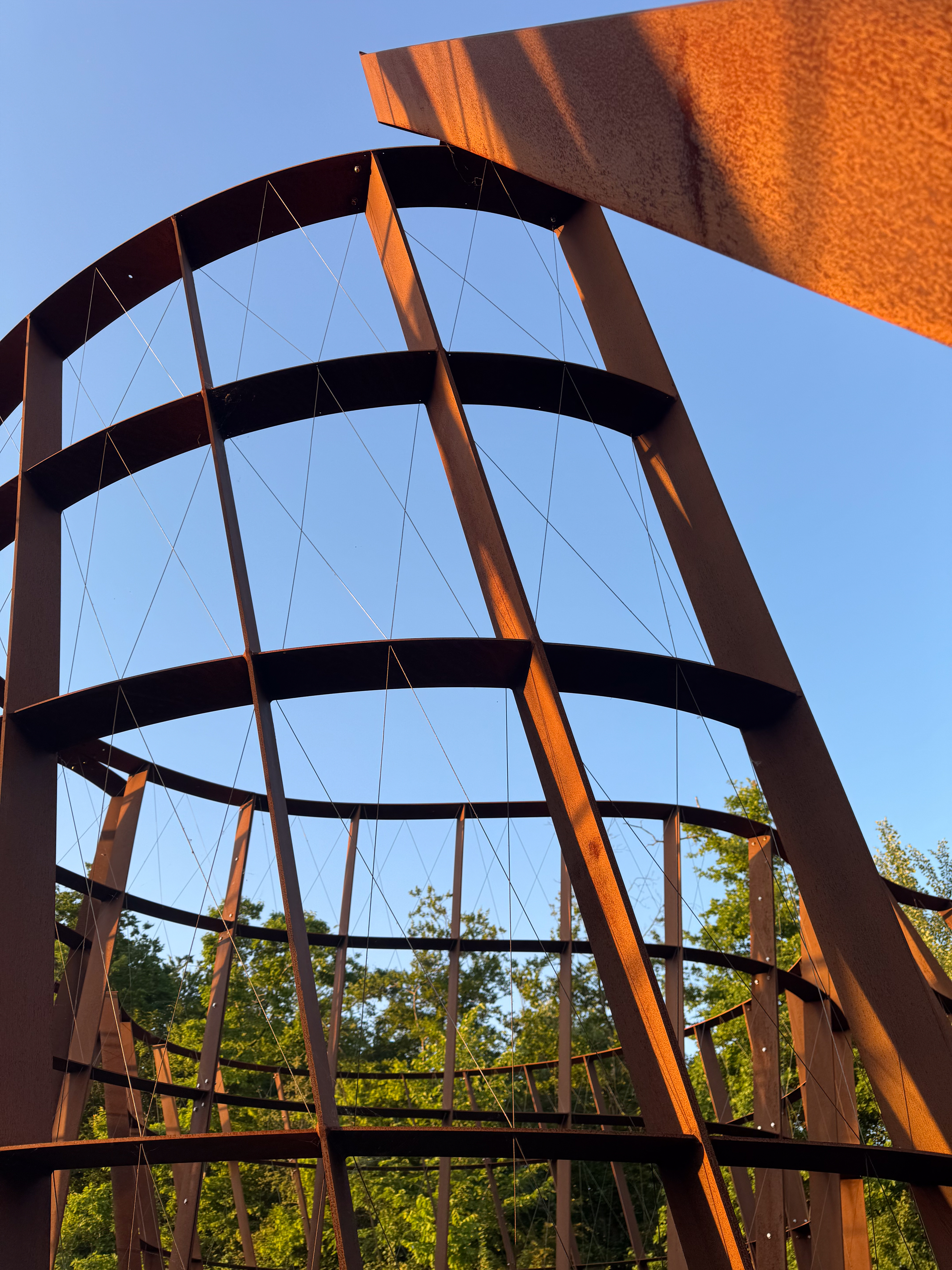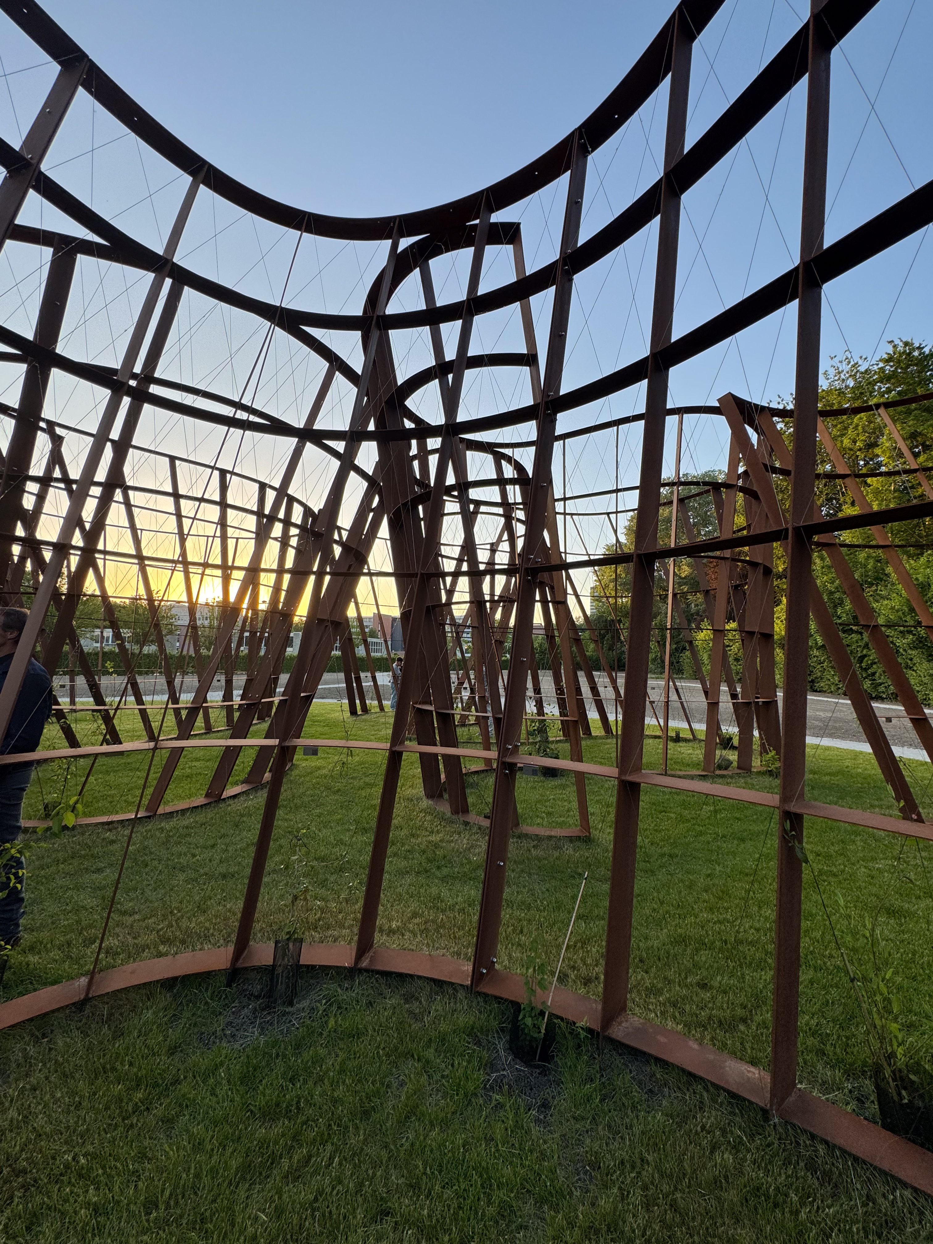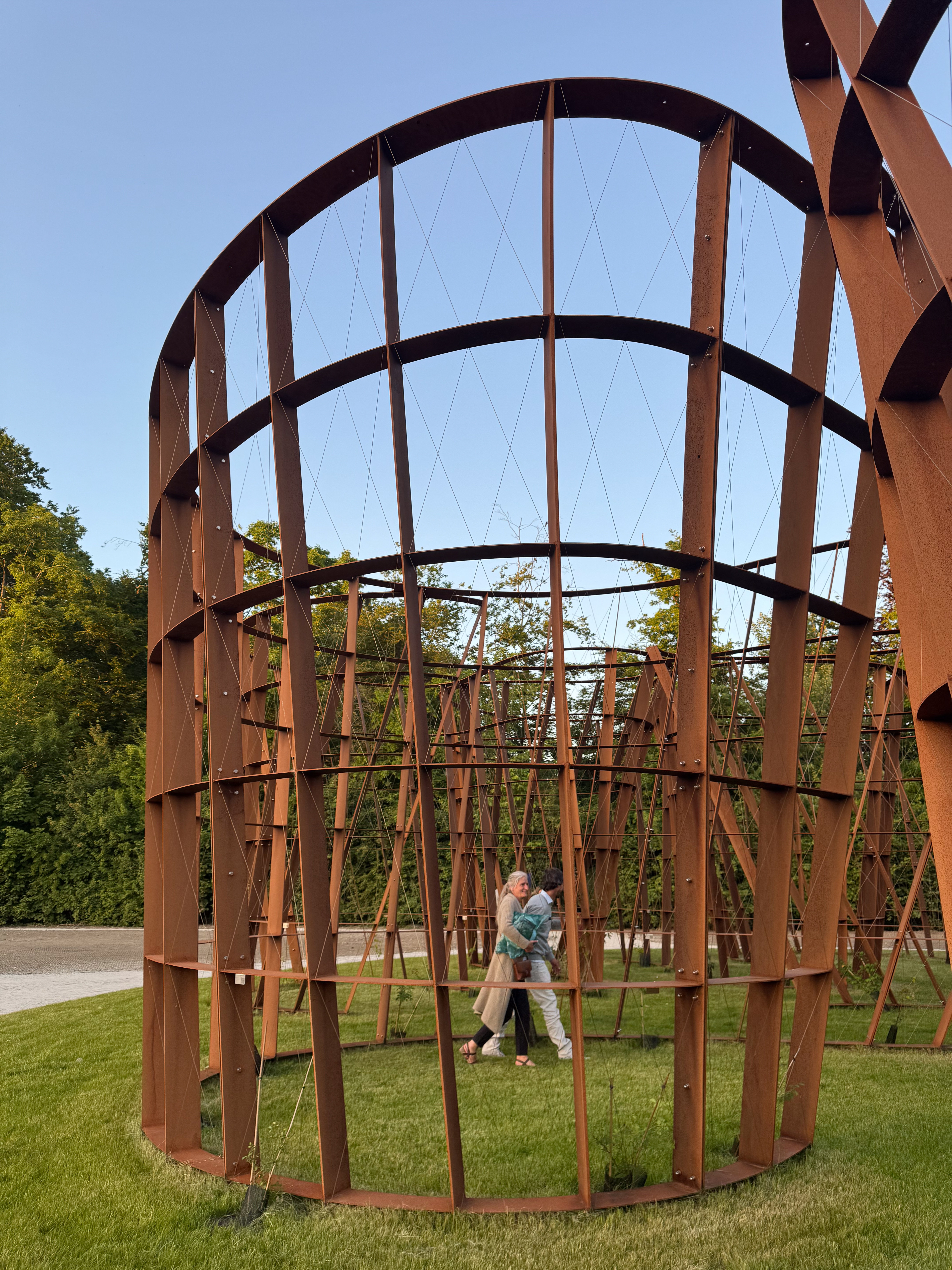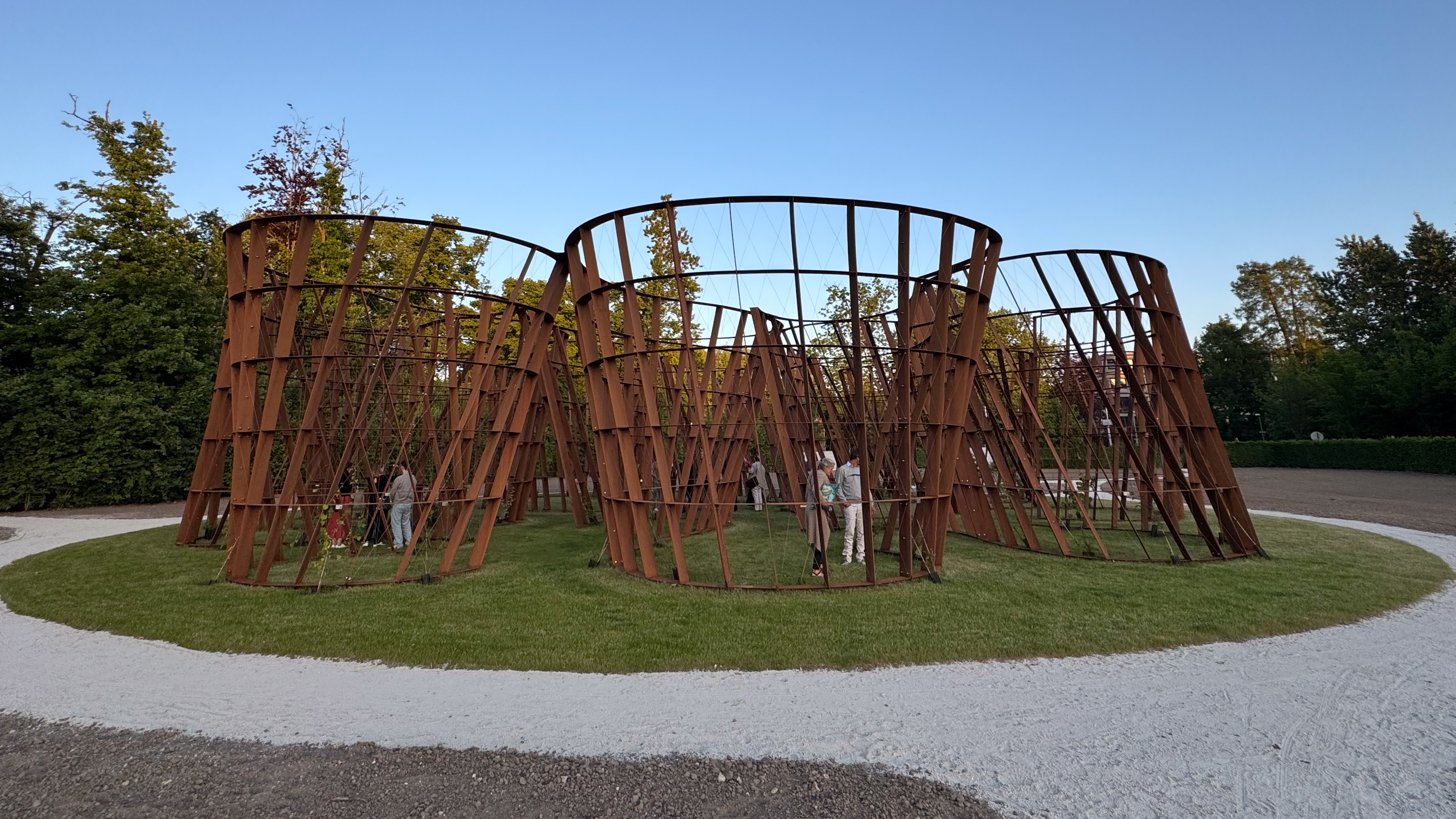 Bij valavond kregen we van onze gids en één de kunstenaars zelf meer uitleg bij het kunstwerk Dwaaltuin van Gijs Van Vaerenbergh. Het zal nog een paar jaar duren eer dit kunstwerk volledig dichtgegroeid zal zijn, dus ik ben benieuwd naar het uieindelijke resultaat. Ik vond de constructie in Cortenstaal op zich al de moeite.